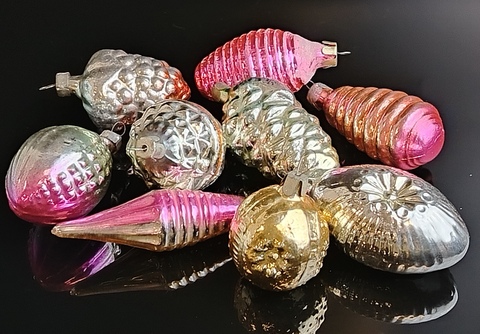 Ёлочные игрушки набор из 9 разных штук, сосульки, шарики, фигурки, стекло, подвесные, ручная роспись, винтаж СССР 1970-1990 гг. Ёлочные украшения советского времени. Стеклянные ёлочные игрушки. Состояние и комплектация на фото