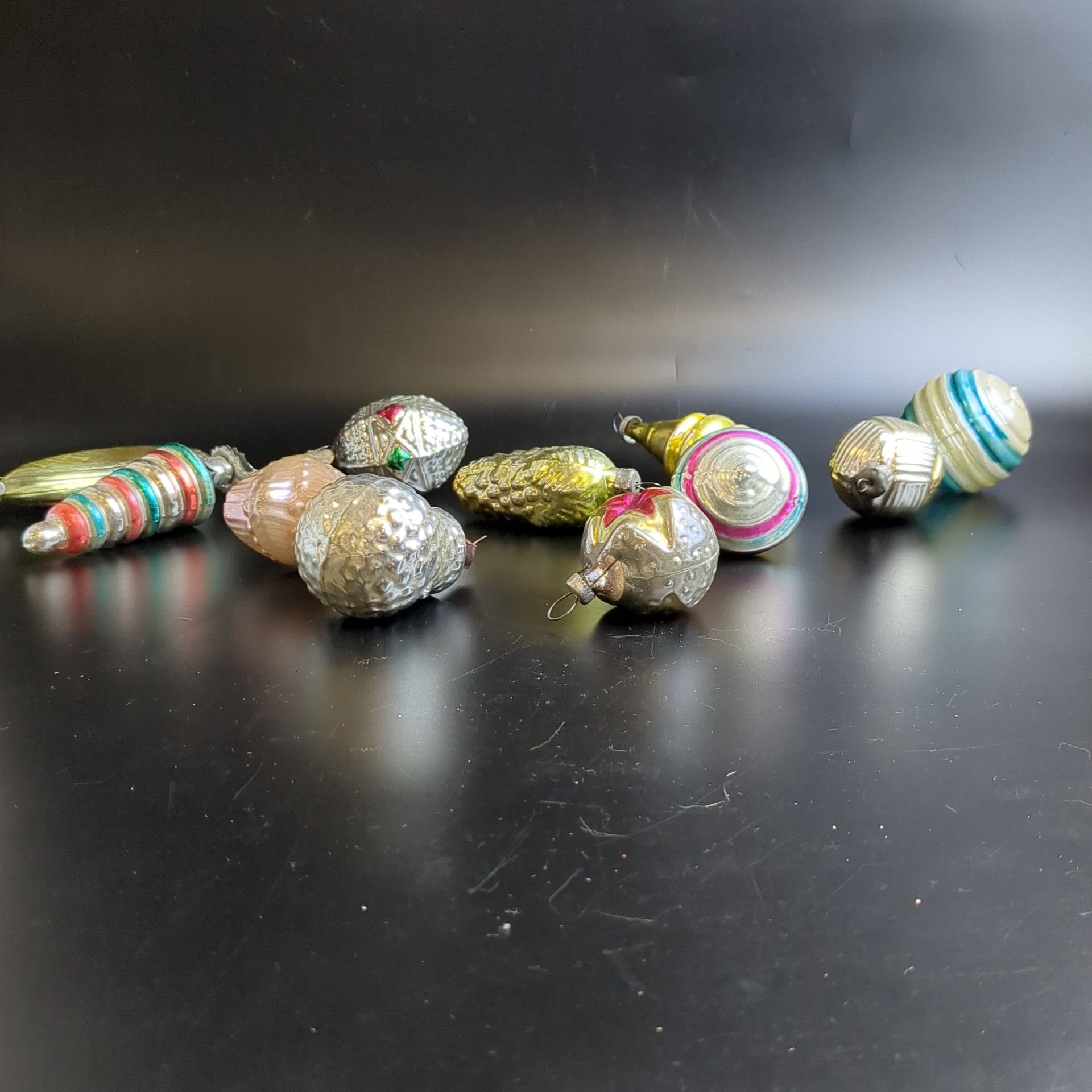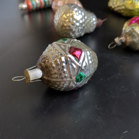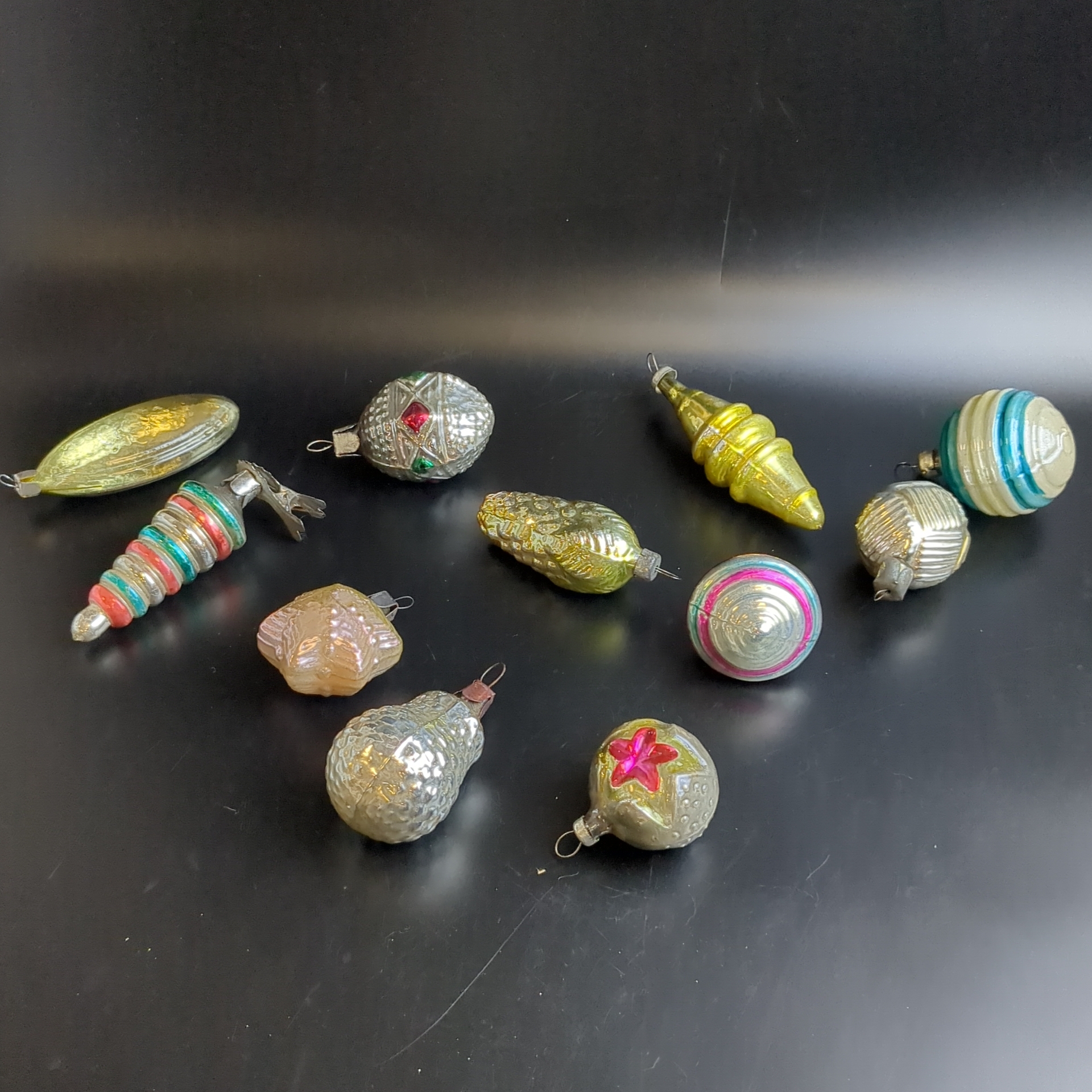 Ёлочные игрушки набор из 11 разных штук, стекло, подвесные, винтаж времён СССР 1960-1980 гг. Советские ёлочные игрушки и украшения. Состояние и комплектация на фото, могут присутствовать незначительные неровности и сколы, закрытые металлическим подвесом (под подвесом).