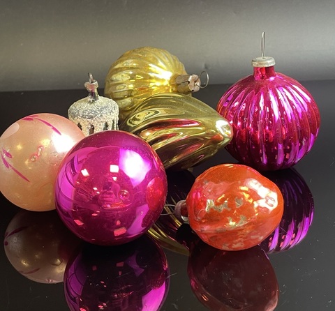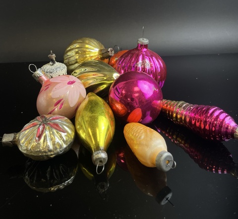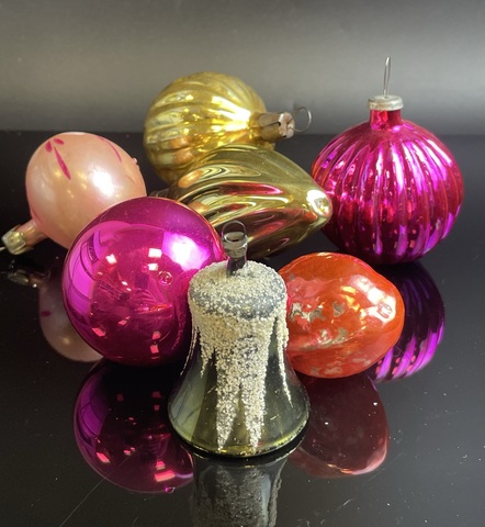 Ёлочные игрушки набор из 11 штук разных колокольчик, сосульки, шарики и др, стекло, подвесные, винтаж СССР 1960-1980 гг
