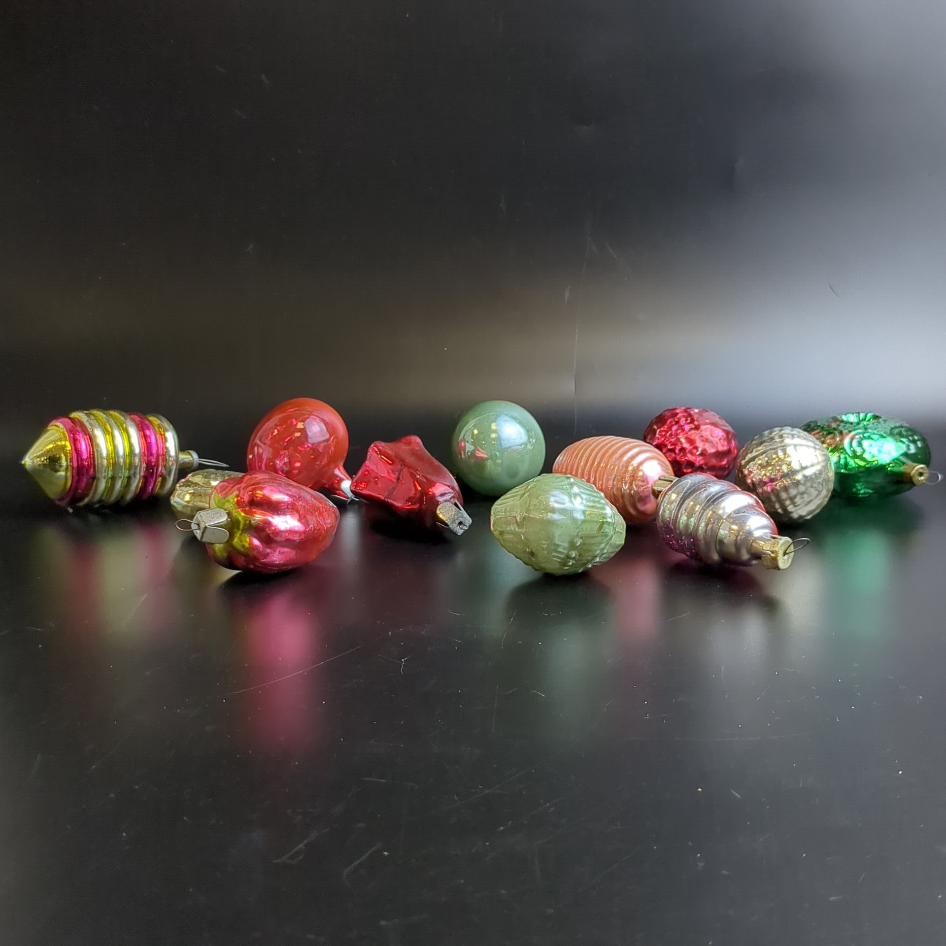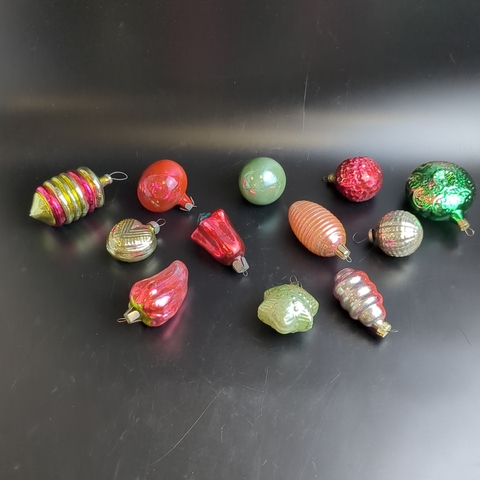 Ёлочные игрушки набор из 12 разных штук, шарики, перец, малинка и др, стекло, подвесные, винтаж времён СССР 1960-1980 гг. Советские ёлочные игрушки и украшения. Состояние и комплектация на фото, могут присутствовать незначительные неровности и сколы, закрытые металлическим подвесом (под подвесом).