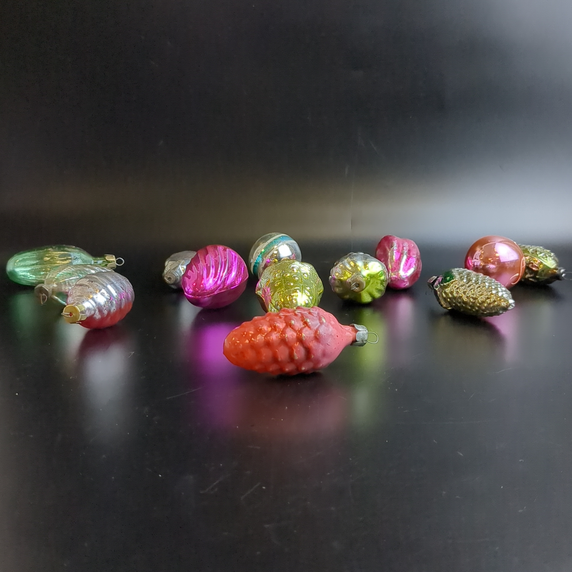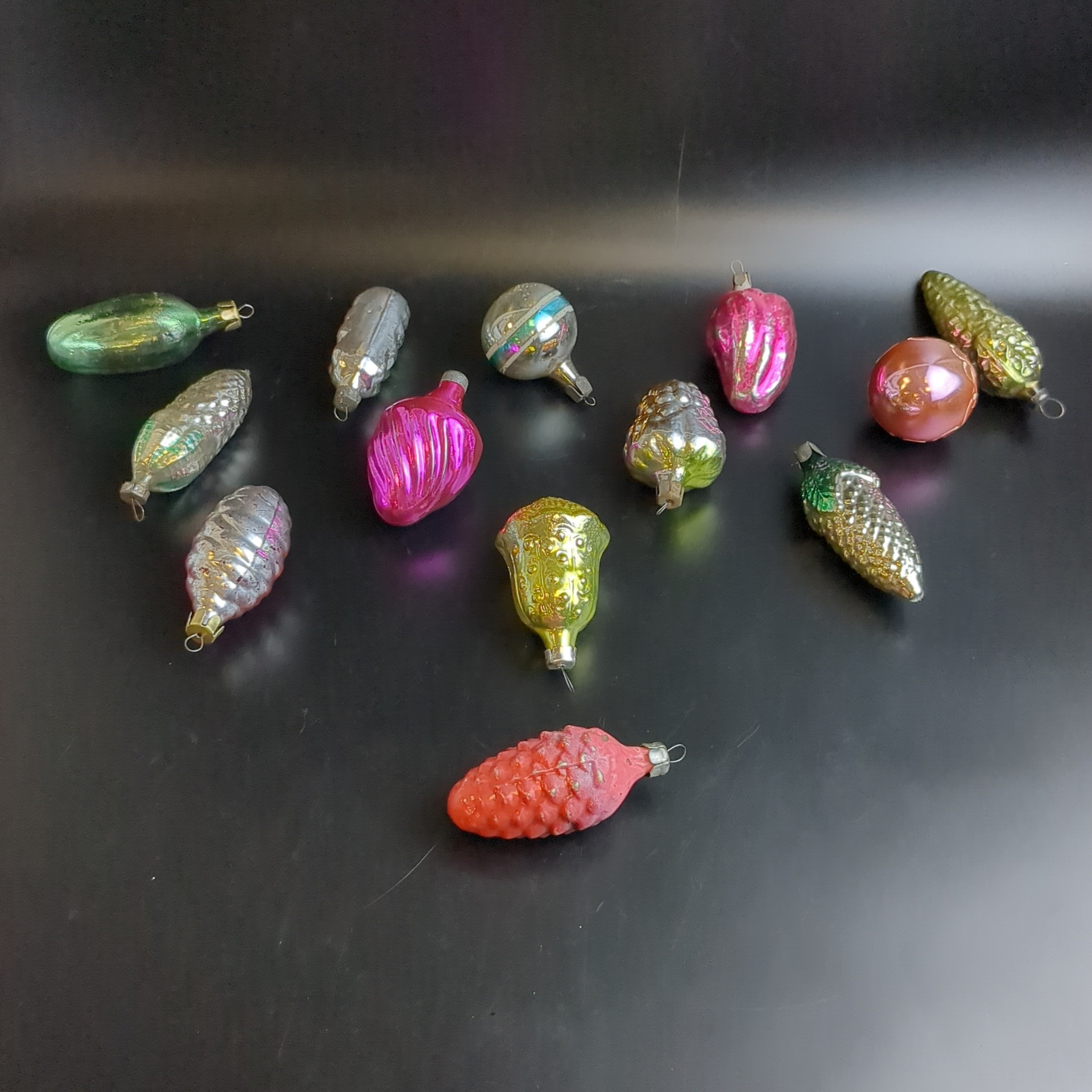 Ёлочные игрушки набор из 13 разных штук, шишки, колокольчики и др, стекло, подвесные, винтаж времён СССР 1960-1980 гг. Советские ёлочные игрушки и украшения. Состояние и комплектация на фото.