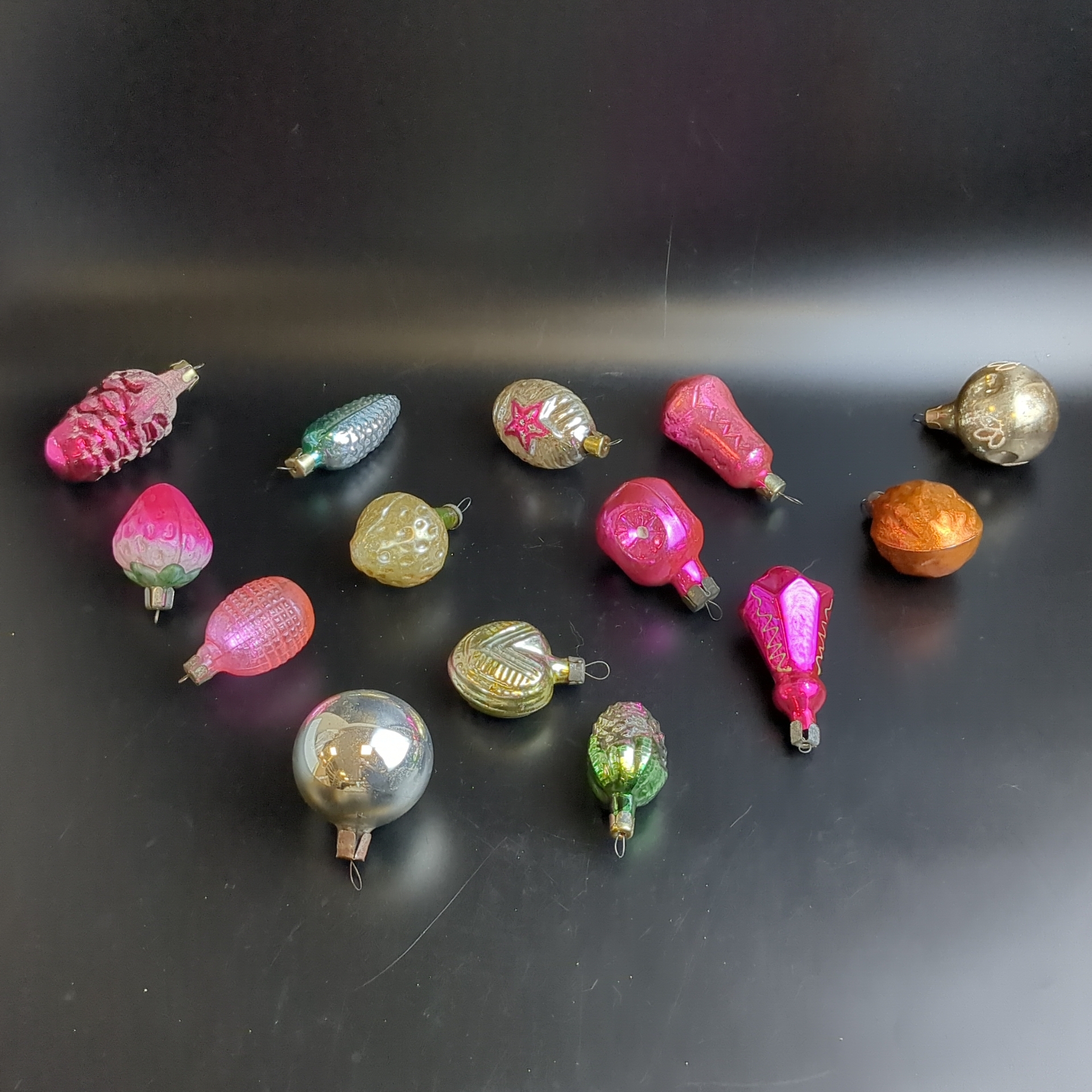 Ёлочные игрушки набор из 14 разных штук, агитация серп и молот, клубника, шишка и др, стекло, подвесные, винтаж времён СССР 1960-1980 гг. Советские ёлочные игрушки и украшения. Состояние и комплектация на фото.