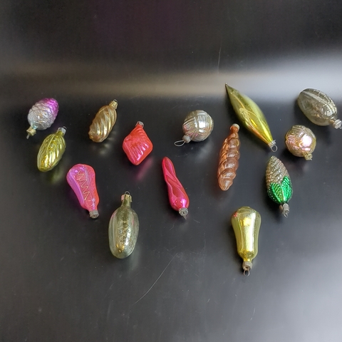 Ёлочные игрушки набор из 14 разных штук, сосульки, листики, шарики и др, стекло, подвесные, винтаж времён СССР 1960-1980 гг. Советские ёлочные игрушки и украшения. Состояние и комплектация на фото.