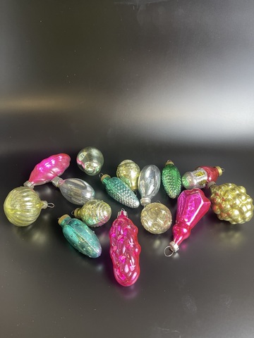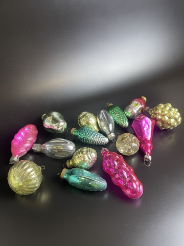 Ёлочные игрушки набор из 15 штук маленьких, стекло, винтаж, разные, СССР 1950-1980 гг. Состояние на фото