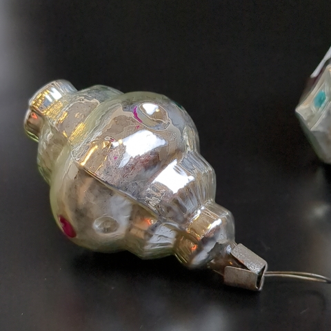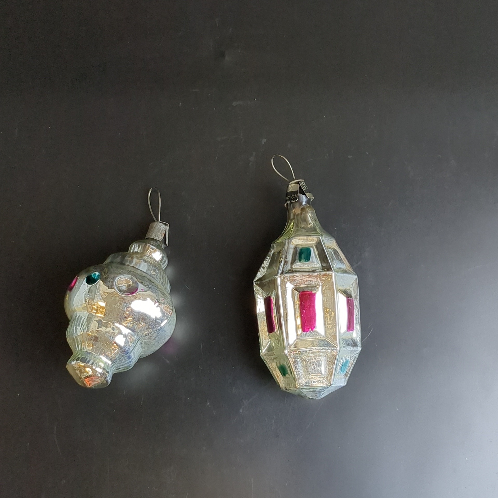 Ёлочные игрушки набор из 2 фонариков, стекло, подвесные, винтаж СССР 1950-х гг