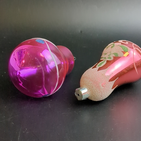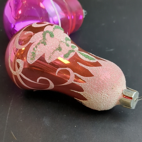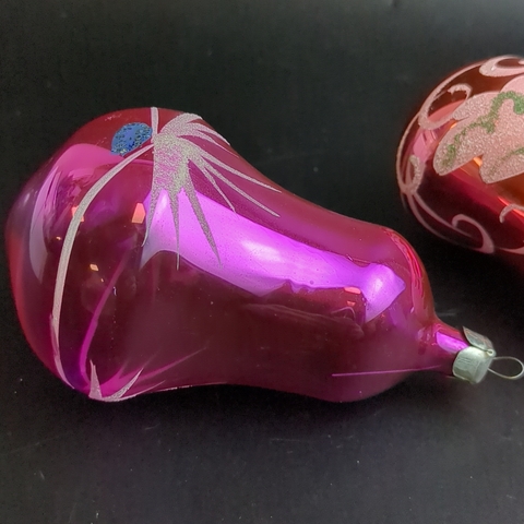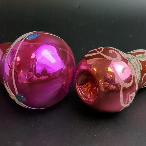 Ёлочные игрушки набор из 2 колокольчиков, стекло, ручная роспись ёлочка, узоры, подвесные, 11 см, винтаж СССР 1960-1980 гг