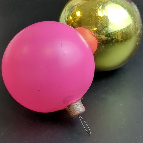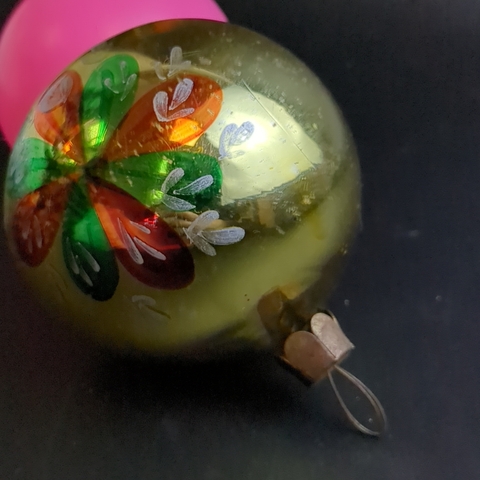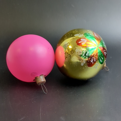 Ёлочные игрушки набор из 2 шаров, толстое стекло, подвесные, роспись цветок, ГДР, винтаж времён СССР 1960-1970 гг