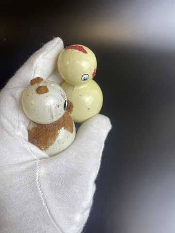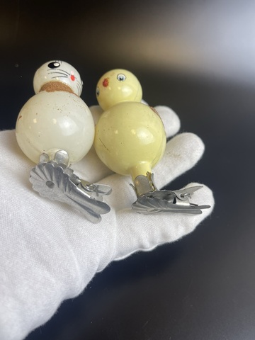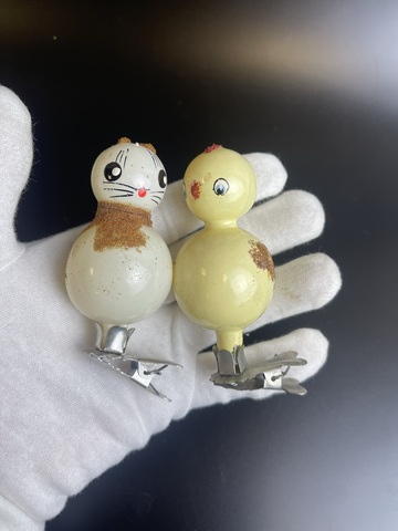 Ёлочные игрушки набор из 2 штук на прищепке зайка и цыпленок, стекло, винтаж, СССР 1950-1980 гг. Состояние на фото