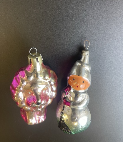 Ёлочные игрушки набор из 2 штук Снеговик и Лев, стекло, винтаж СССР 1960-1990 гг. Советские игрушки, состояние и комплектация на фото