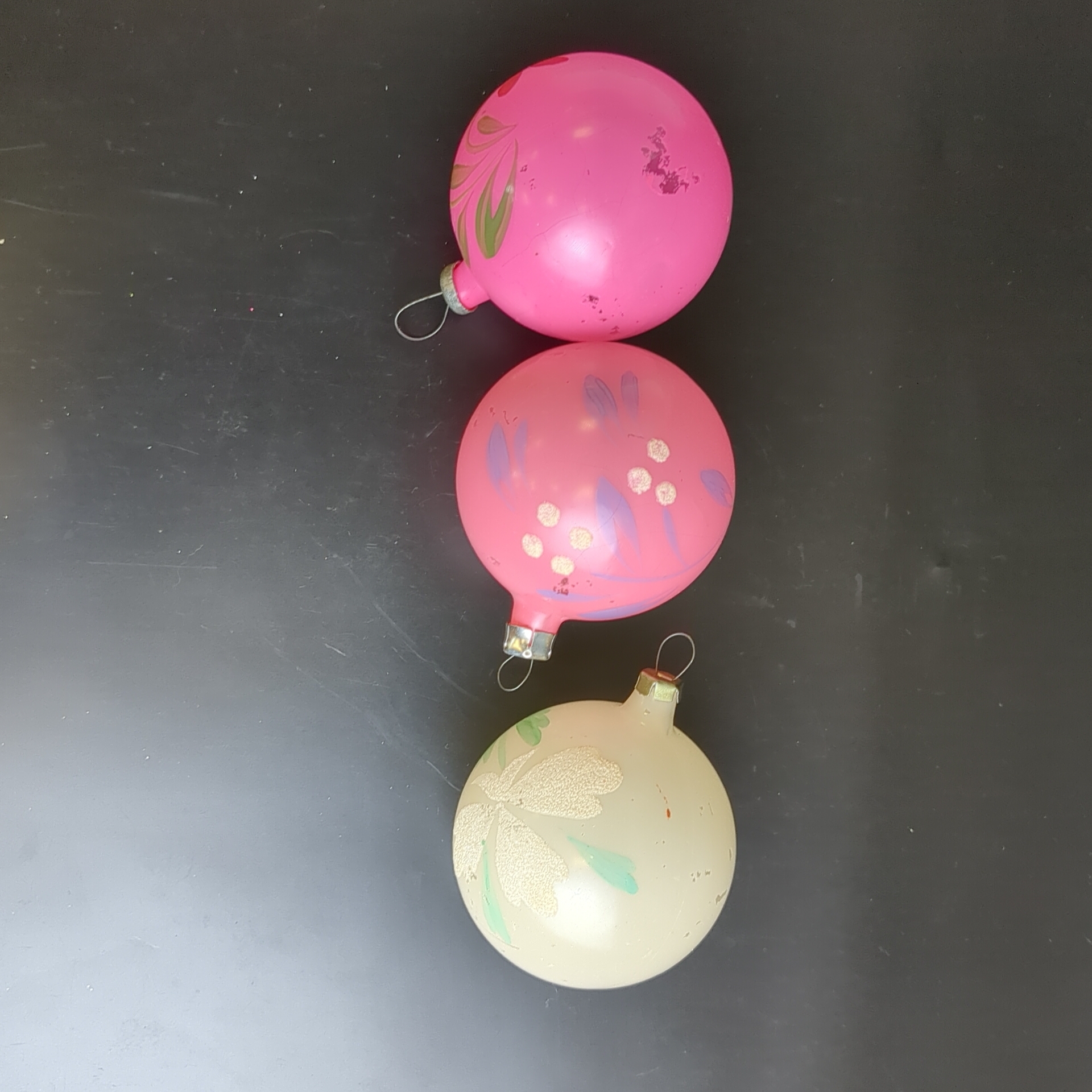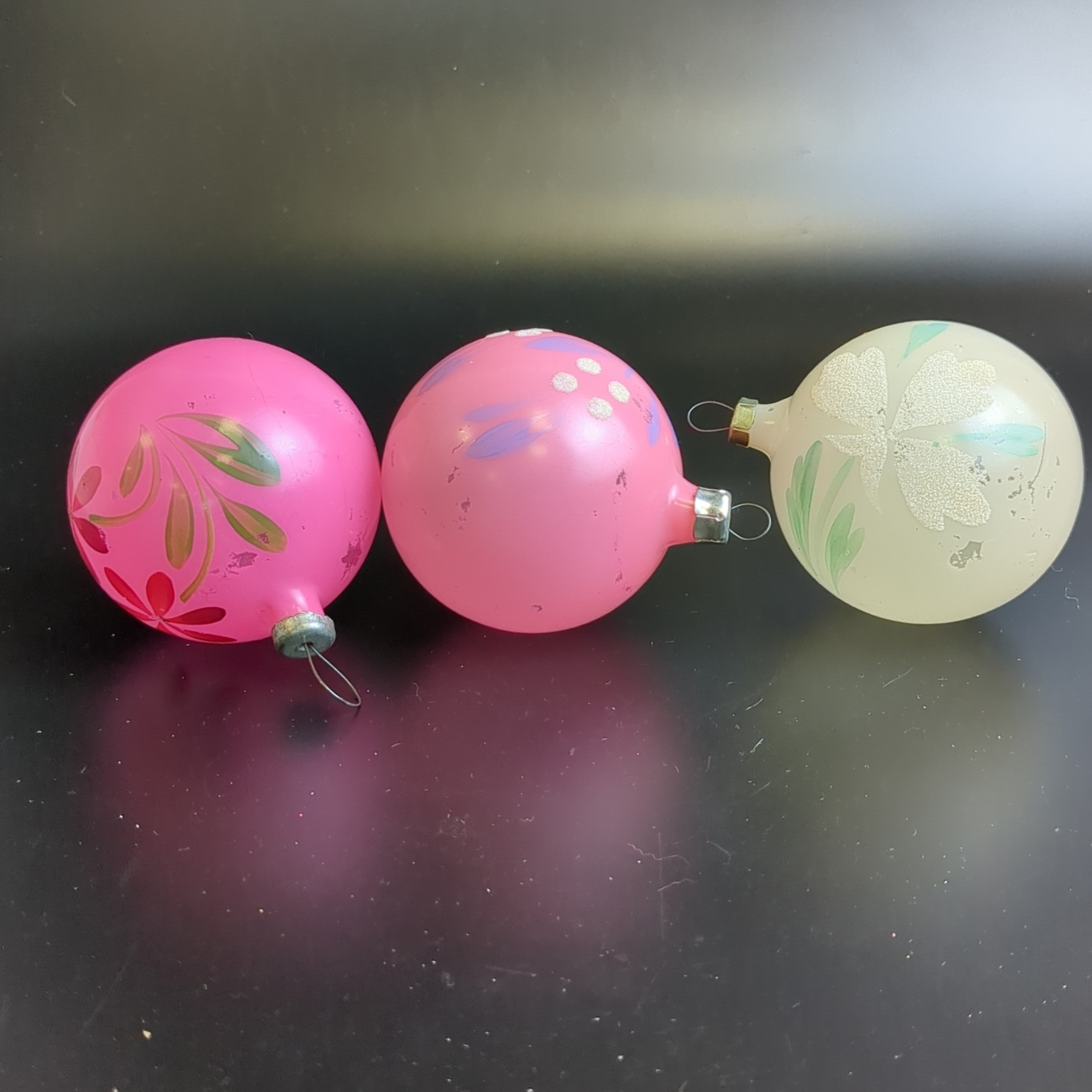 Ёлочные игрушки набор из 3 шариков стекло, матовые, d-7 см, роспись, подвесные, винтаж СССР 1960-1980 гг