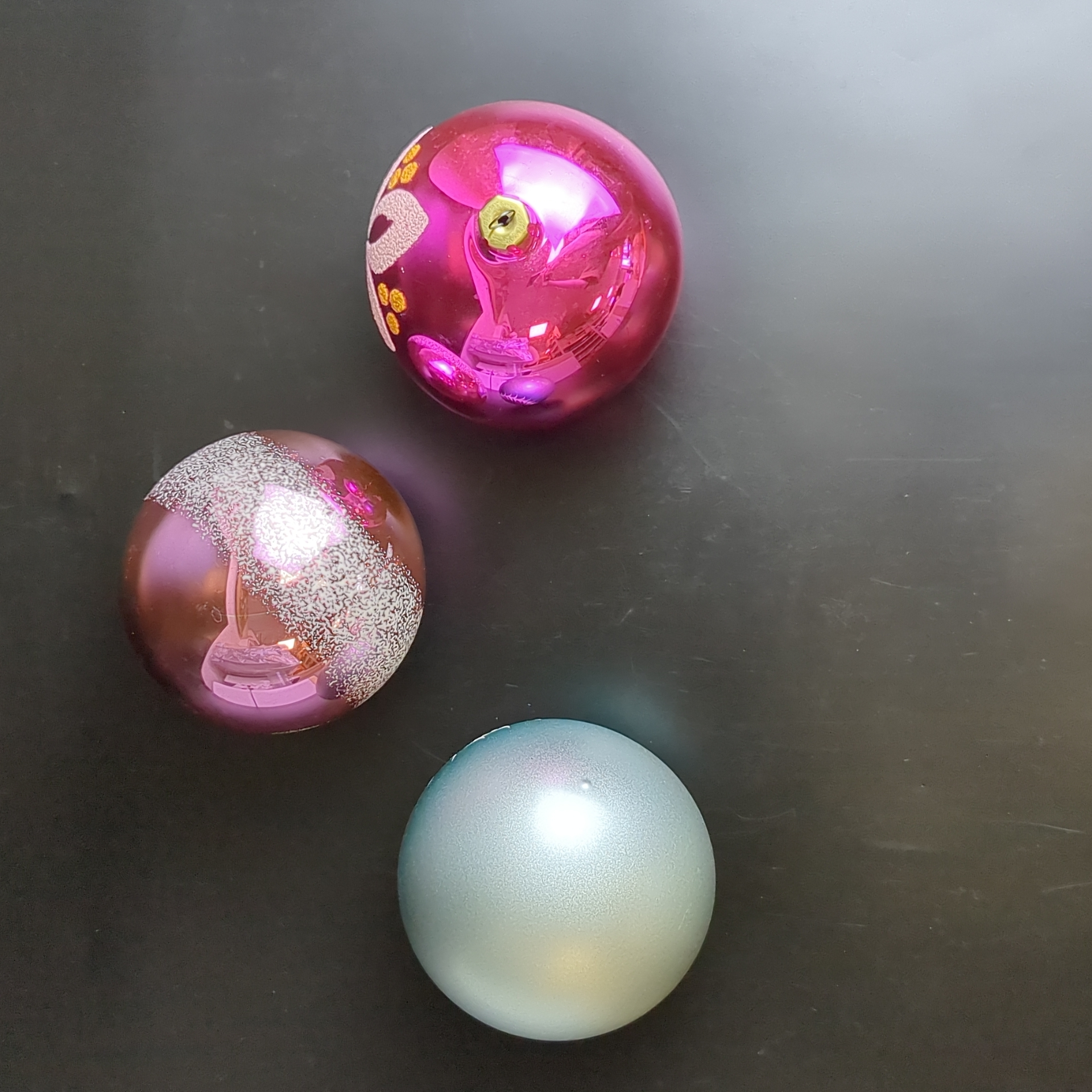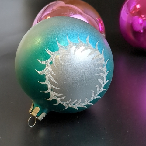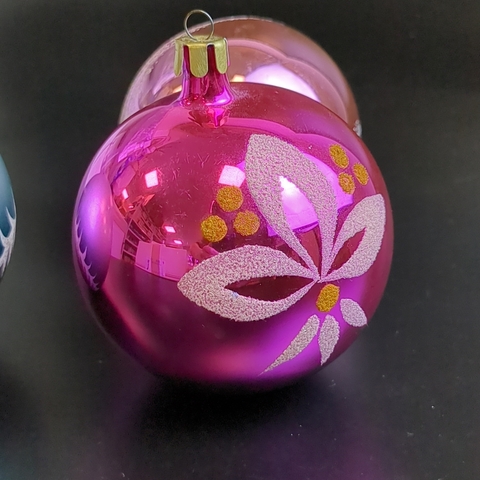 Ёлочные игрушки набор из 3 шариков стекло, ручная роспись, d-7.5 см, подвесные, винтаж СССР 1960-1980 гг