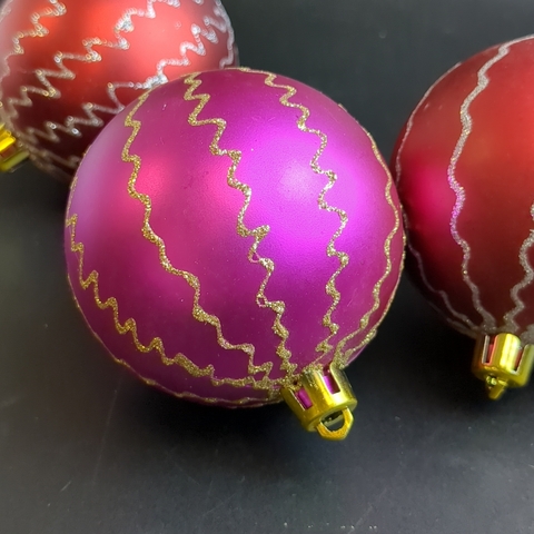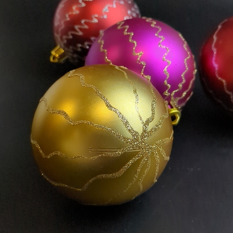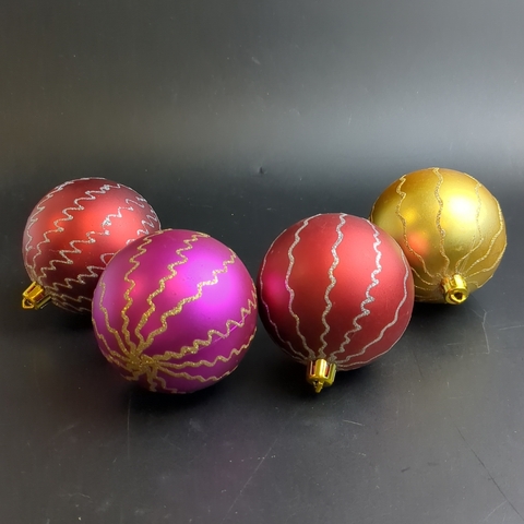 Ёлочные игрушки набор из 4 пластмассовых ярких с узорами шаров, подвесные, в стиле винтаж