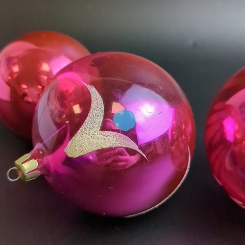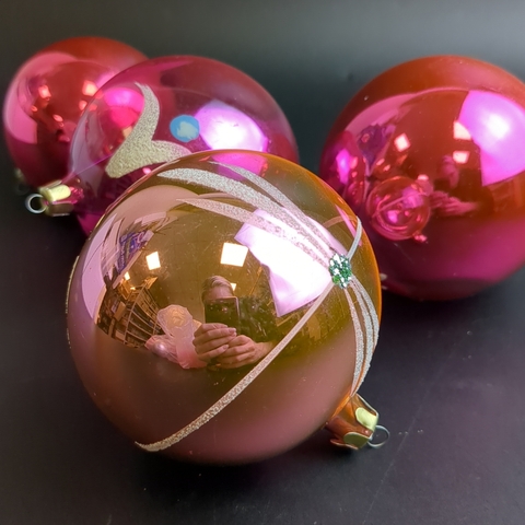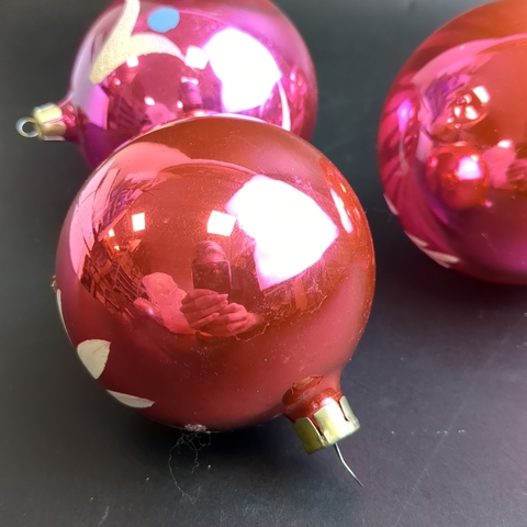 Ёлочные игрушки набор из 4 расписных шаров, стекло, подвесные, детализированная ручная роспись,цветы, узоры, винтаж СССР 1960-1980 гг