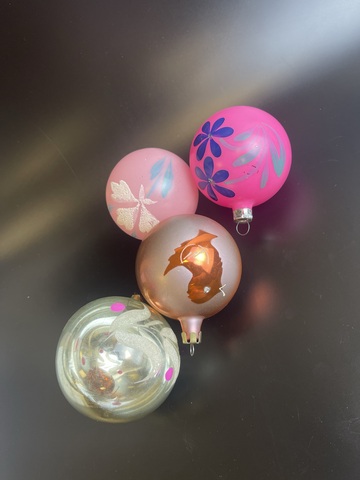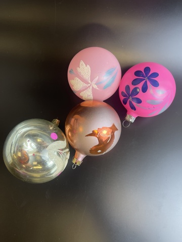 Ёлочные игрушки набор из 4 разных больших шаров с росписью, винтаж, СССР 1950-1980 гг. Комплектация и состояние на фото