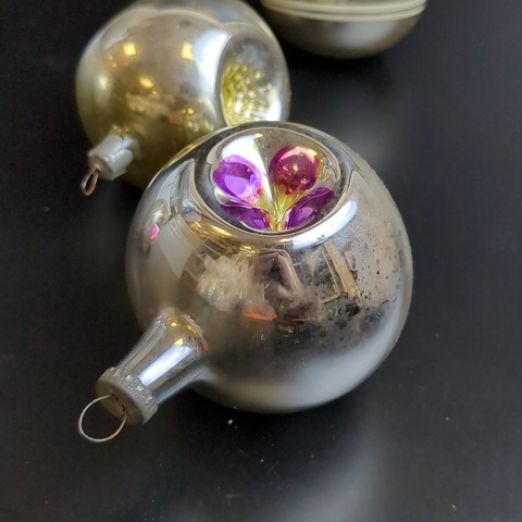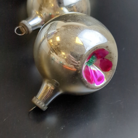 Ёлочные игрушки набор из 4 разных шариков, стекло, подвесные, роспись, винтаж СССР 1960-1980 гг