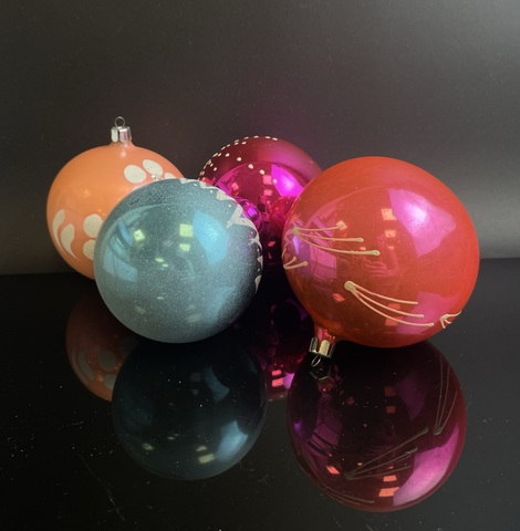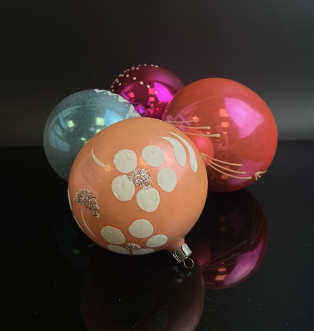 Ёлочные игрушки набор из 4 разных шариков, стекло, ручная роспись, узор, подвесные, винтаж СССР 1960-1980 гг