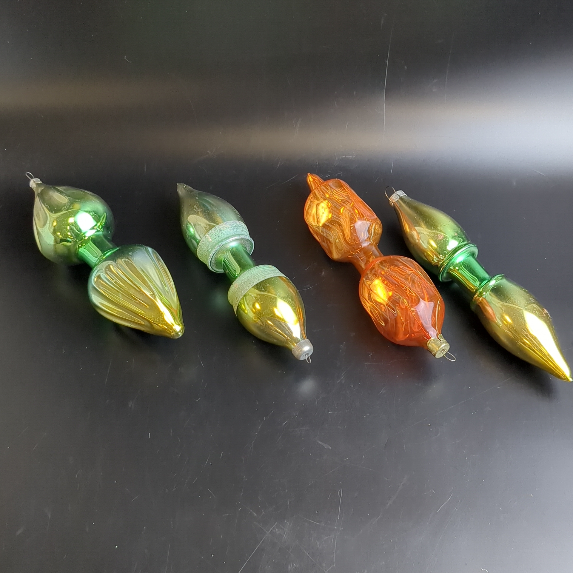 Ёлочные игрушки набор из 4 разных сосулек, стекло, подвесные, 15.5-16 см, винтаж времён СССР 1960-1980 гг.Советские ёлочные игрушки и украшения. Состояние и комплектация на фото.