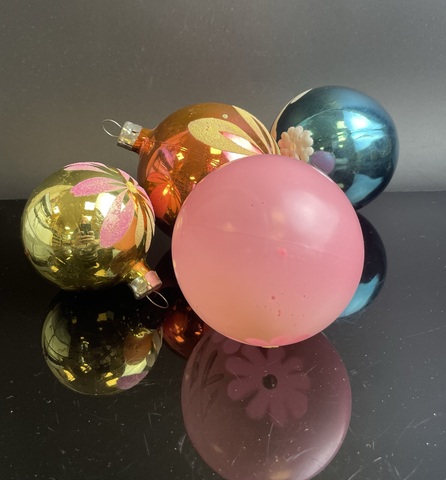 Ёлочные игрушки набор из 4 шариков, стекло, декор, роспись, яркие цвета, винтаж СССР 1970-1990 гг