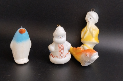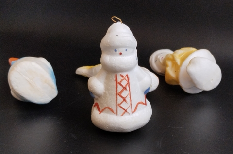 Ёлочные игрушки набор из 4 штук из пенопласта, Старик Хотабыч, пингвин, Снегурочка, рыбка, подвесные, винтаж СССР 1960-1990 гг