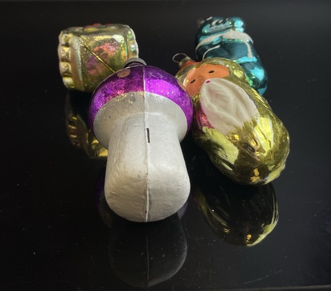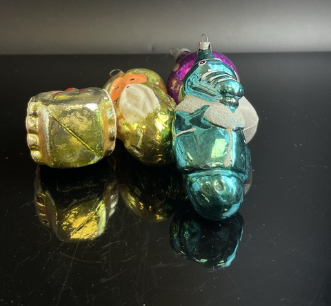 Ёлочные игрушки набор из 4 штук разные, Крокодил Гена, избушка, Султан, грибок, стекло, роспись, винтаж СССР 1960-1980 гг