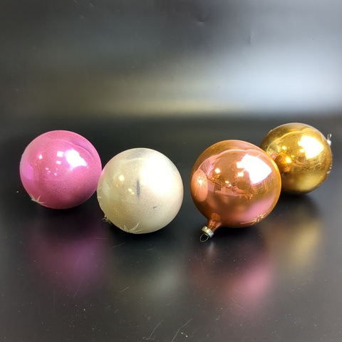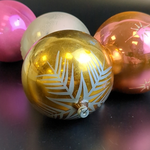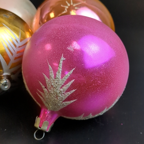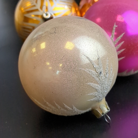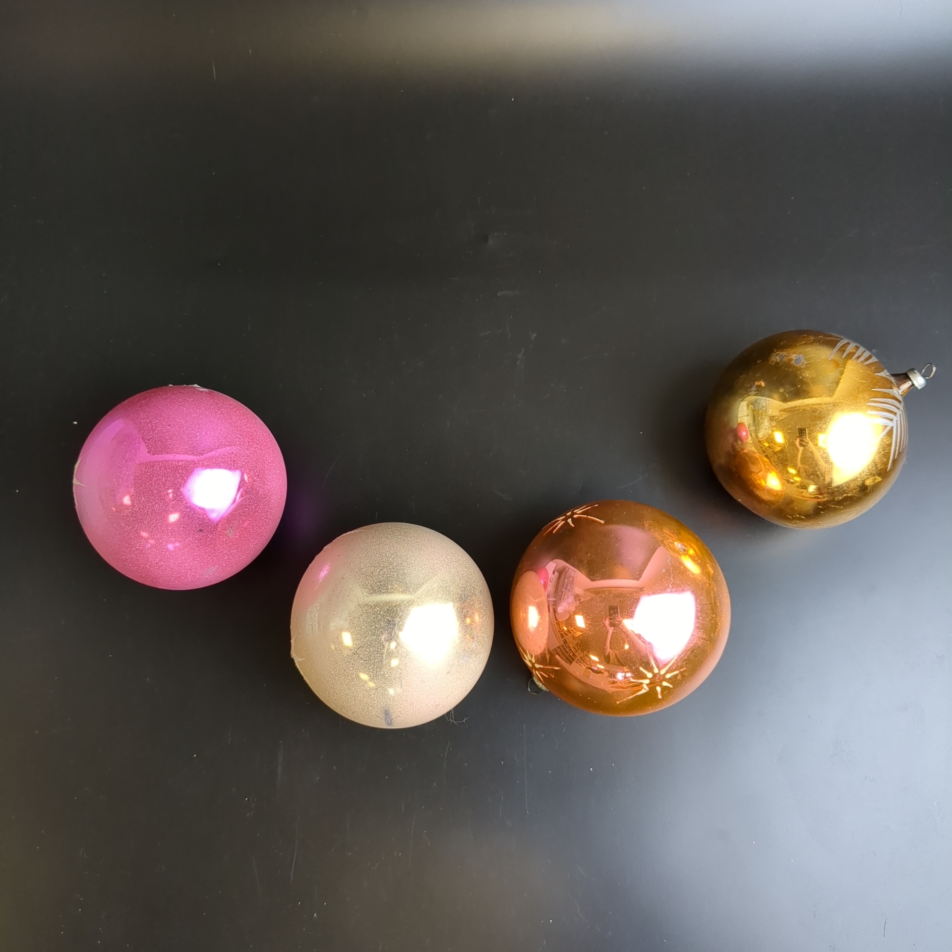 Ёлочные игрушки набор из 4 штук яркие шарики, стекло, подвесные,роспись, винтаж СССР 1960-1980 гг
