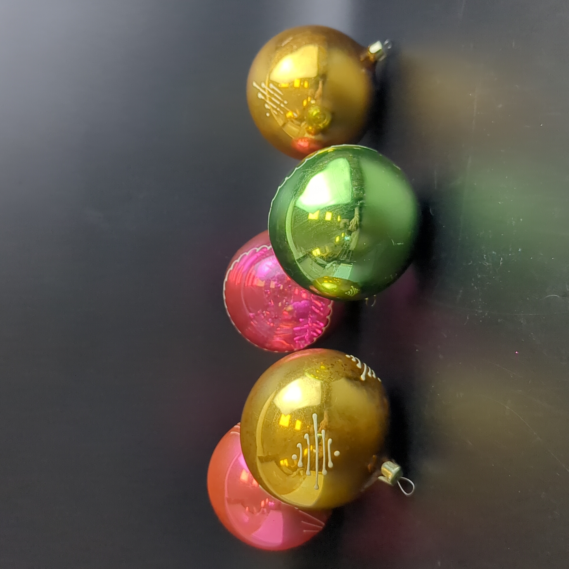 Ёлочные игрушки набор из 5 больших шариков, D- 8 см, стекло, узоры, подвесные, винтаж СССР 1970-1990 гг. Состояние и комплектация на фото. Винтажные шарики на ёлку времён СССР. Ёлочные украшения в ретро стиле.