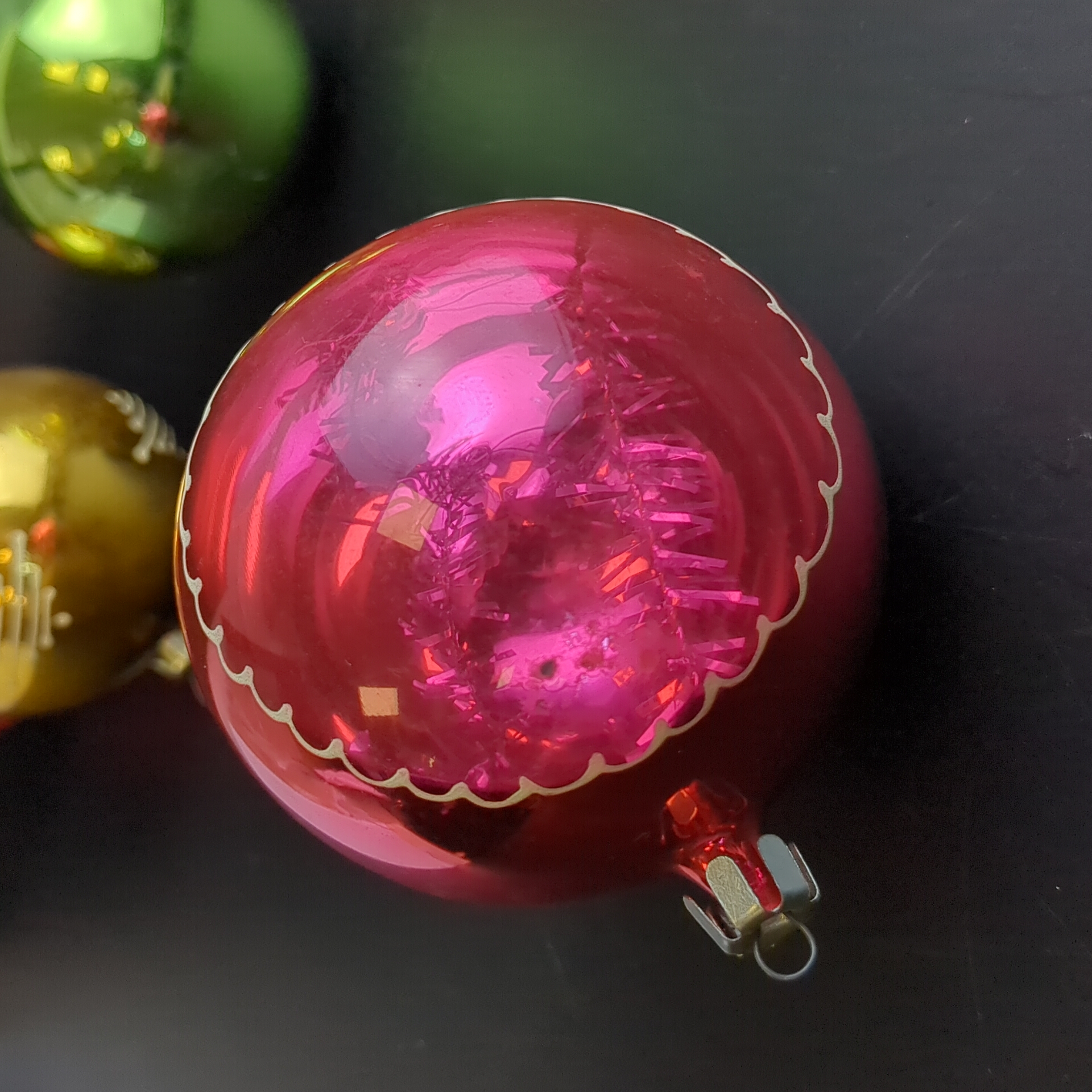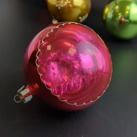 Ёлочные игрушки набор из 5 больших шариков, стекло, узоры, подвесные, винтаж СССР 1970-1990 гг