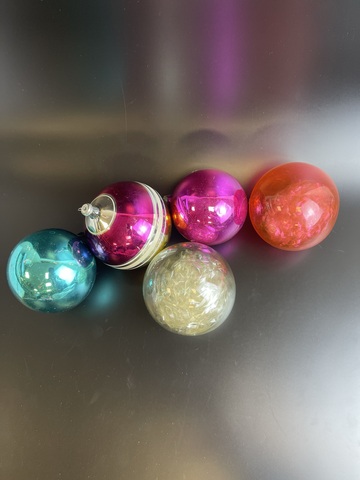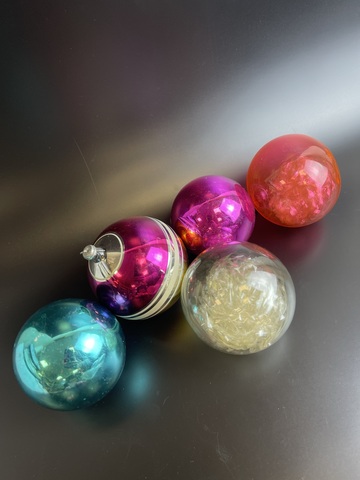 Ёлочные игрушки набор из 5 больших шаров, стекло, роспись, винтаж СССР 1960-1990 гг. Состояние и комплектация на фото