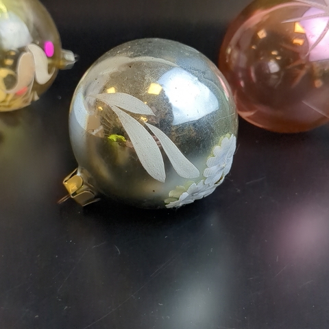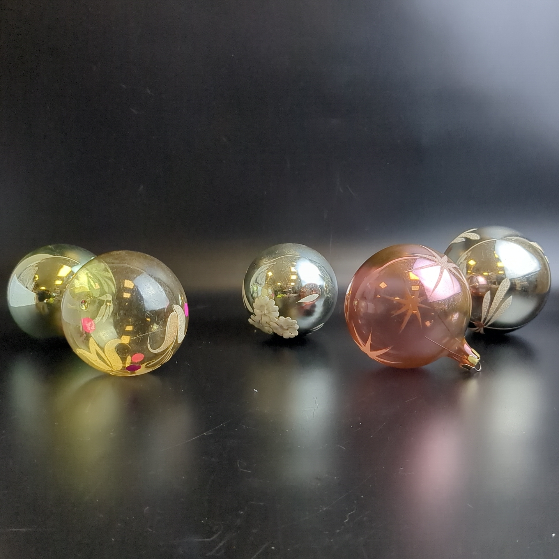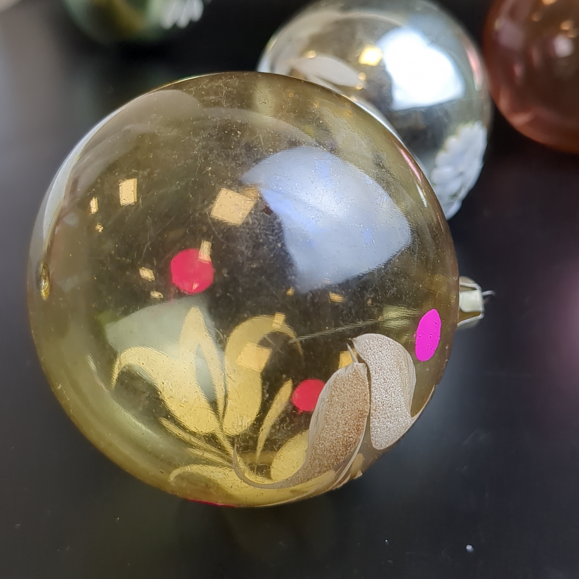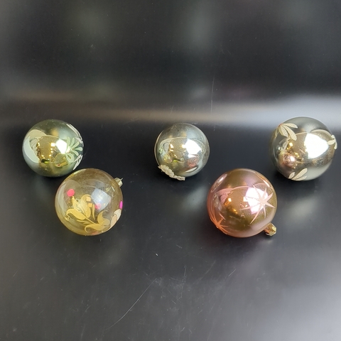Ёлочные игрушки набор из 5 разных больших шариков, стекло, ручная роспись, подвесные, винтаж времён СССР 1960-1980 гг. Советские ёлочные игрушки и украшения. Состояние и комплектация на фото.