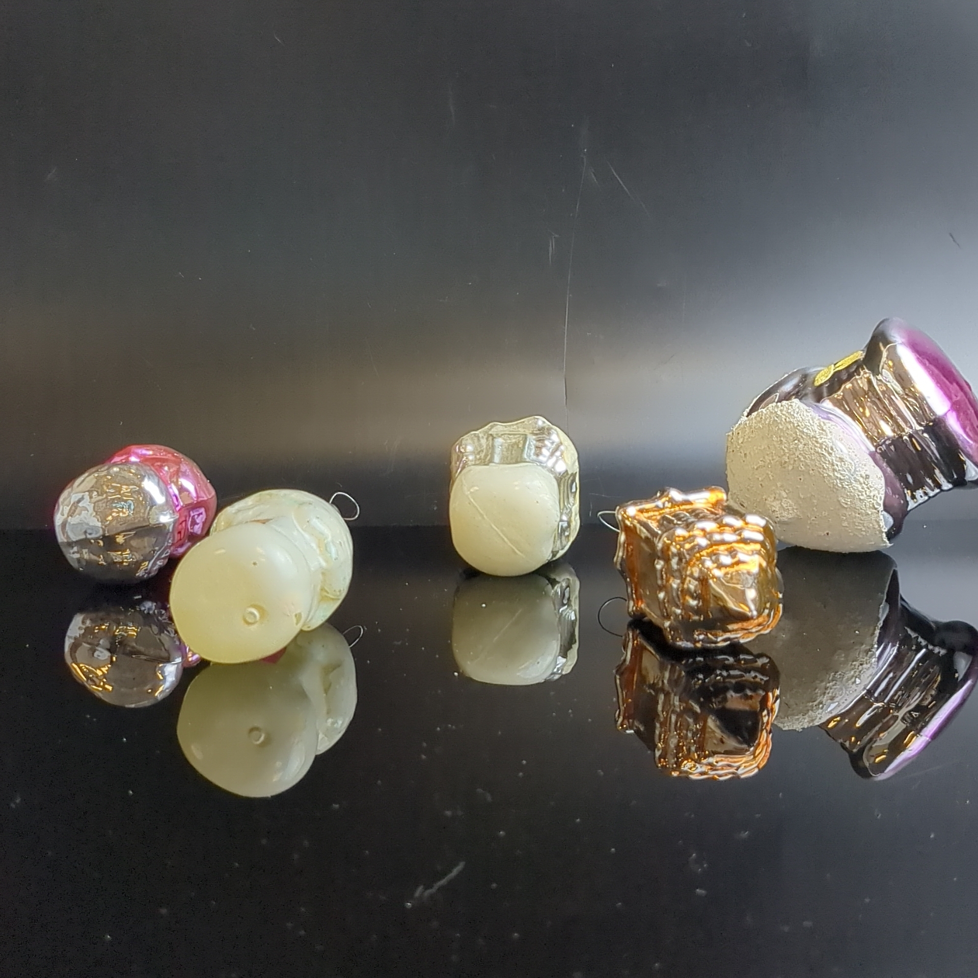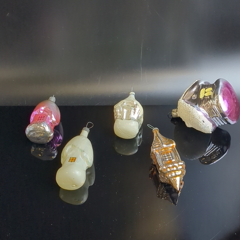 Ёлочные игрушки набор из 5 разных избушек, домики под снегом, стекло, подвесные, винтаж времён СССР 1960-1980 гг. Советские ёлочные игрушки и украшения. Состояние и комплектация на фото.