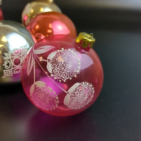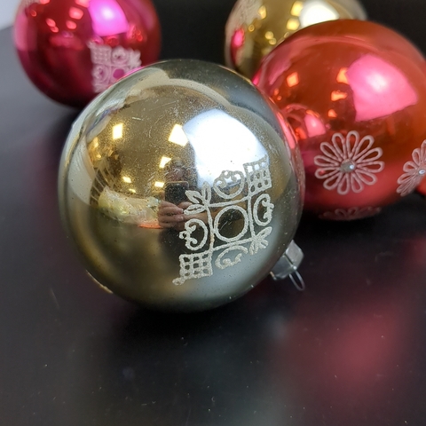 Ёлочные игрушки набор из 5 разных шариков, стекло, роспись, винтаж, цветные, винтаж СССР 1960-1980 гг