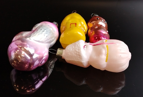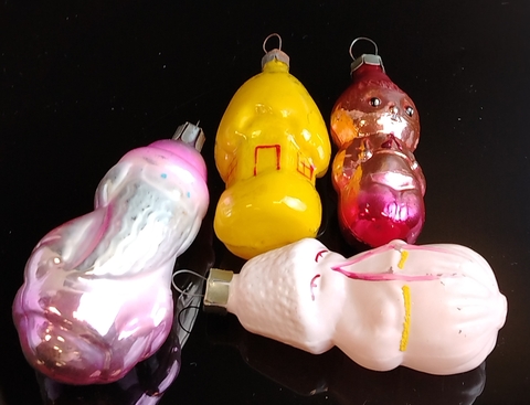 Ёлочные игрушки набор из 4 разных штук избушка, Чиполино Дед Мороз и др, стекло, винтаж, роспись, СССР 1950-1980 гг. Состояние на фото. Ёлочные украшения советского времени, детализированная ручная роспись.