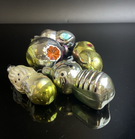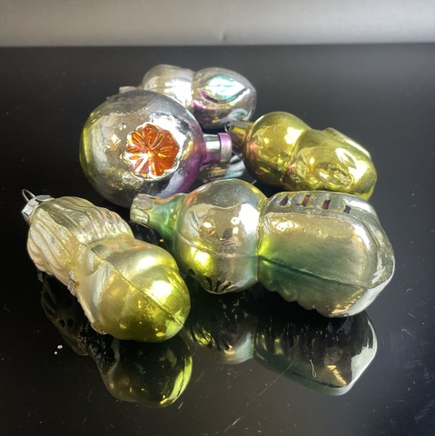 Ёлочные игрушки набор из 5 разных штук пчёлка, рыбка, совёнки, собака, стекло, подвесные, винтаж СССР 1960-1980 гг