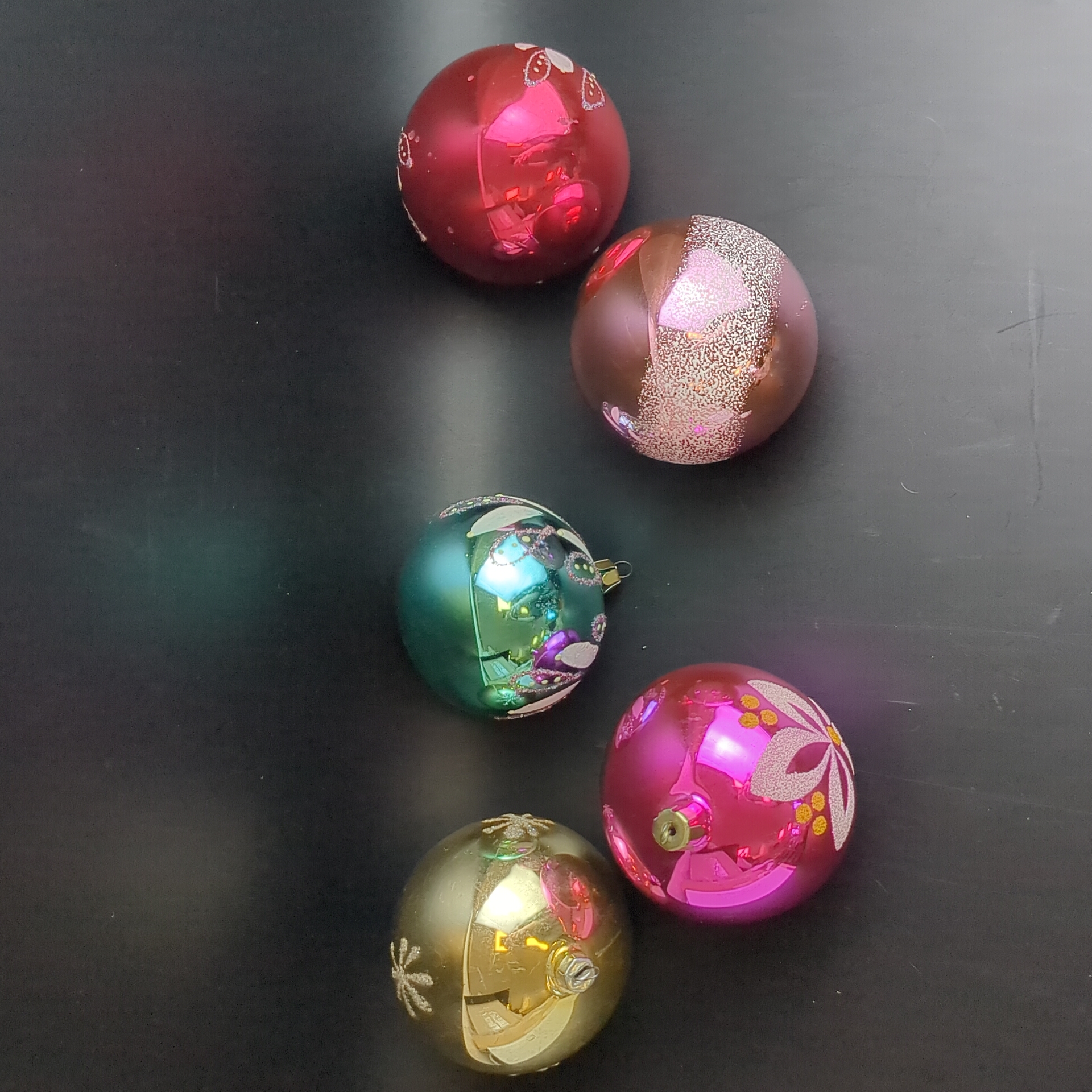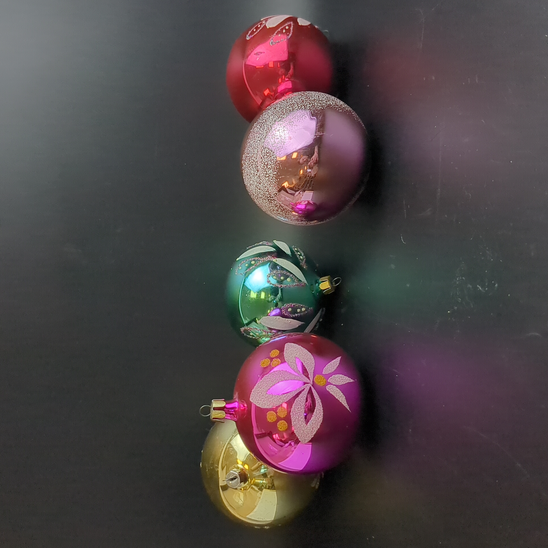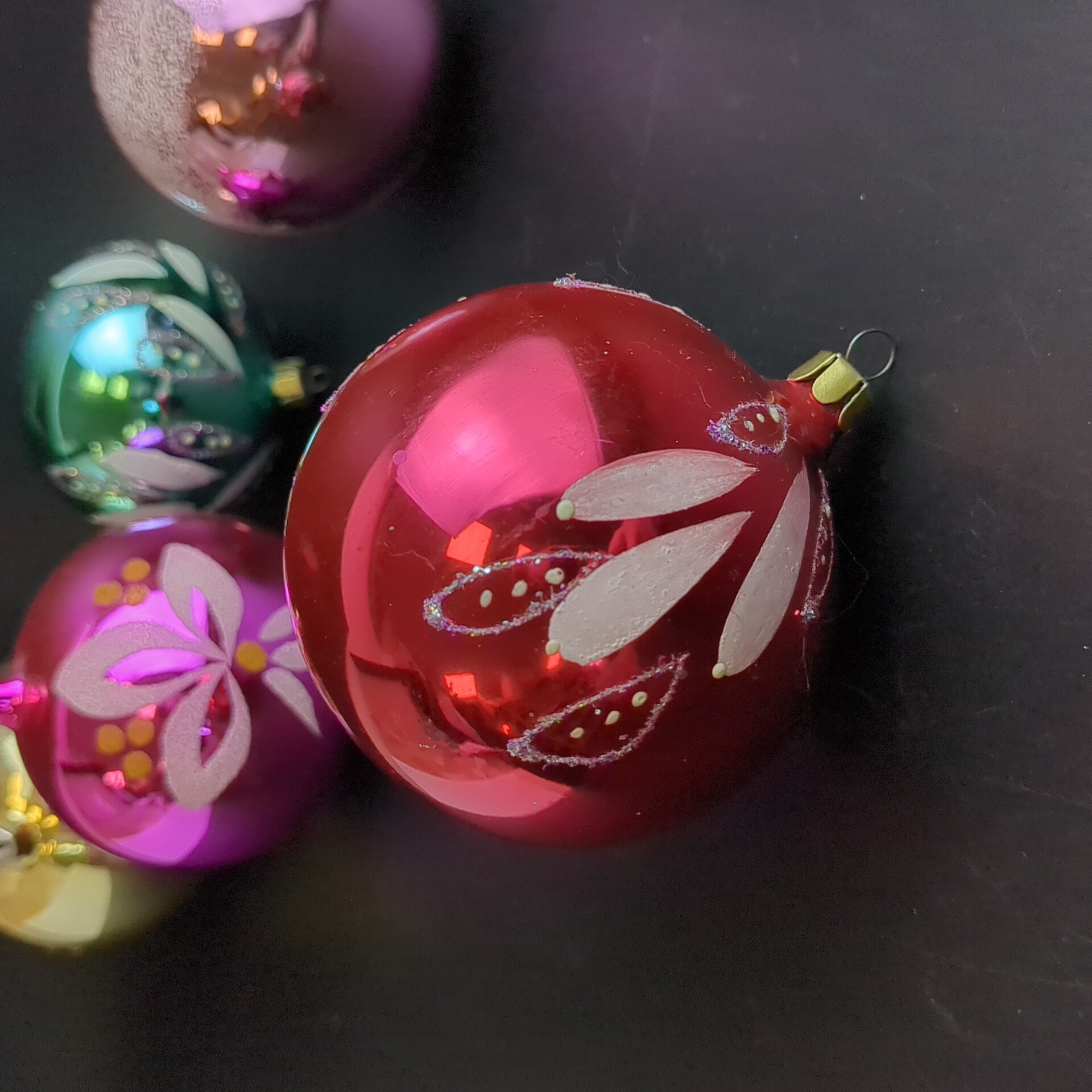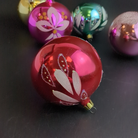 Ёлочные игрушки набор из 5 шариков, стекло, роспись ручная, узоры, подвесные, винтаж СССР 1970-1990 гг. Состояние и комплектация на фото. Винтажные шарики на ёлку времён СССР. Ёлочные украшения в ретро стиле.