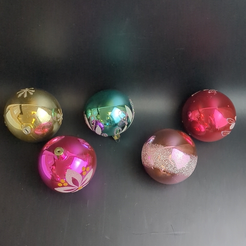 Ёлочные игрушки набор из 5 шариков, стекло, роспись ручная, узоры, подвесные, винтаж СССР 1970-1990 гг