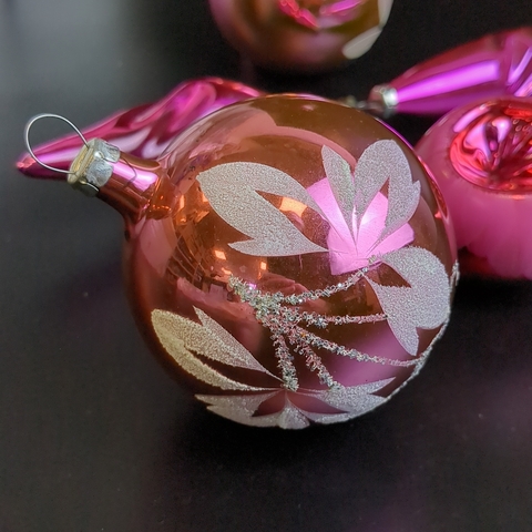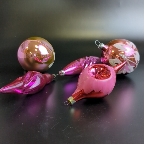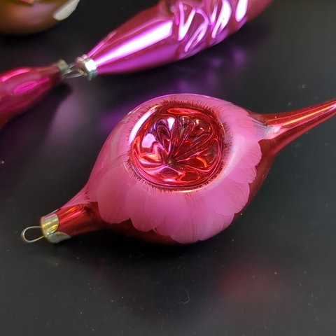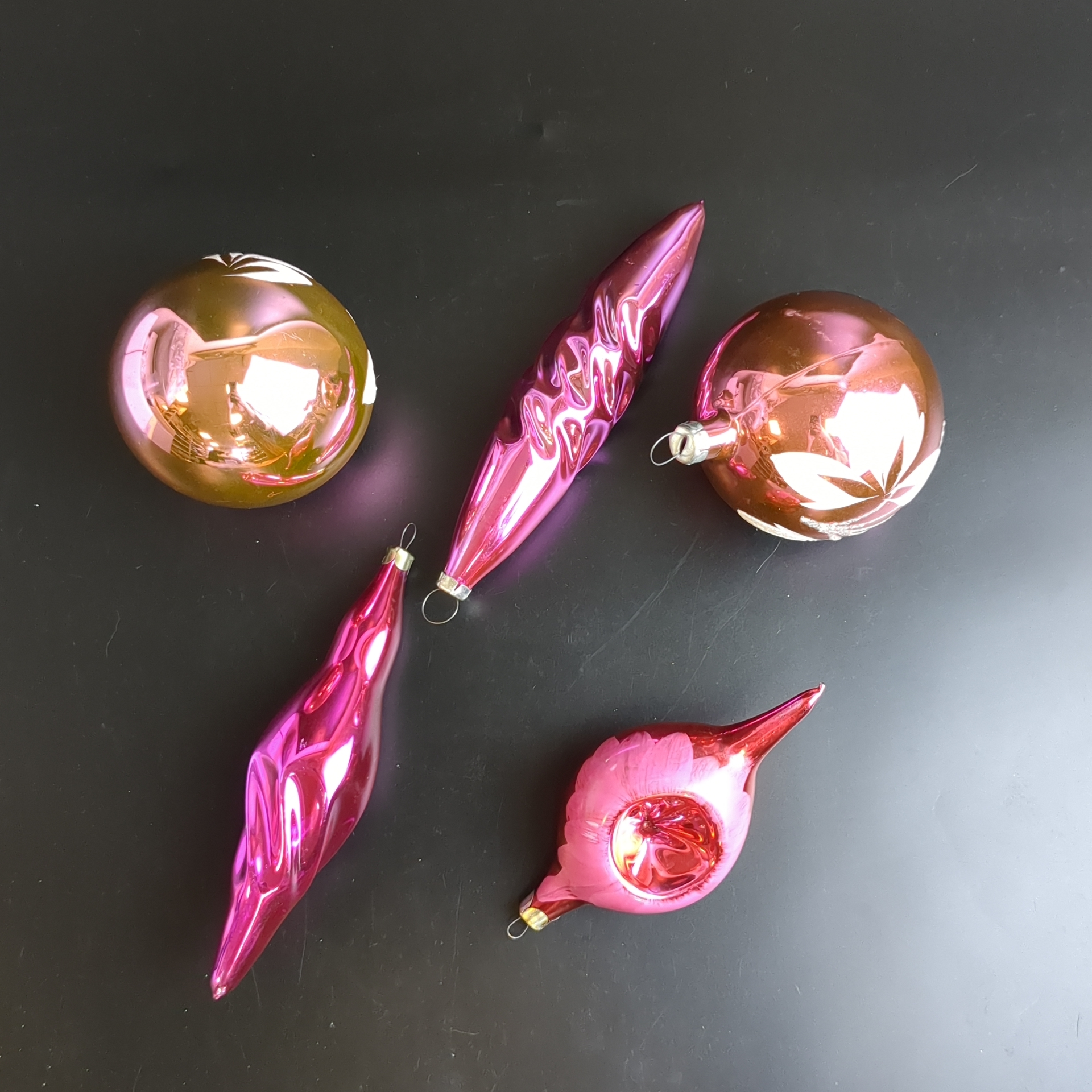 Ёлочные игрушки набор из 5 штук, (3 сосульки и 2 шарика), роспись, стекло, красивые, подвесные, винтаж СССР 1960-1980 гг