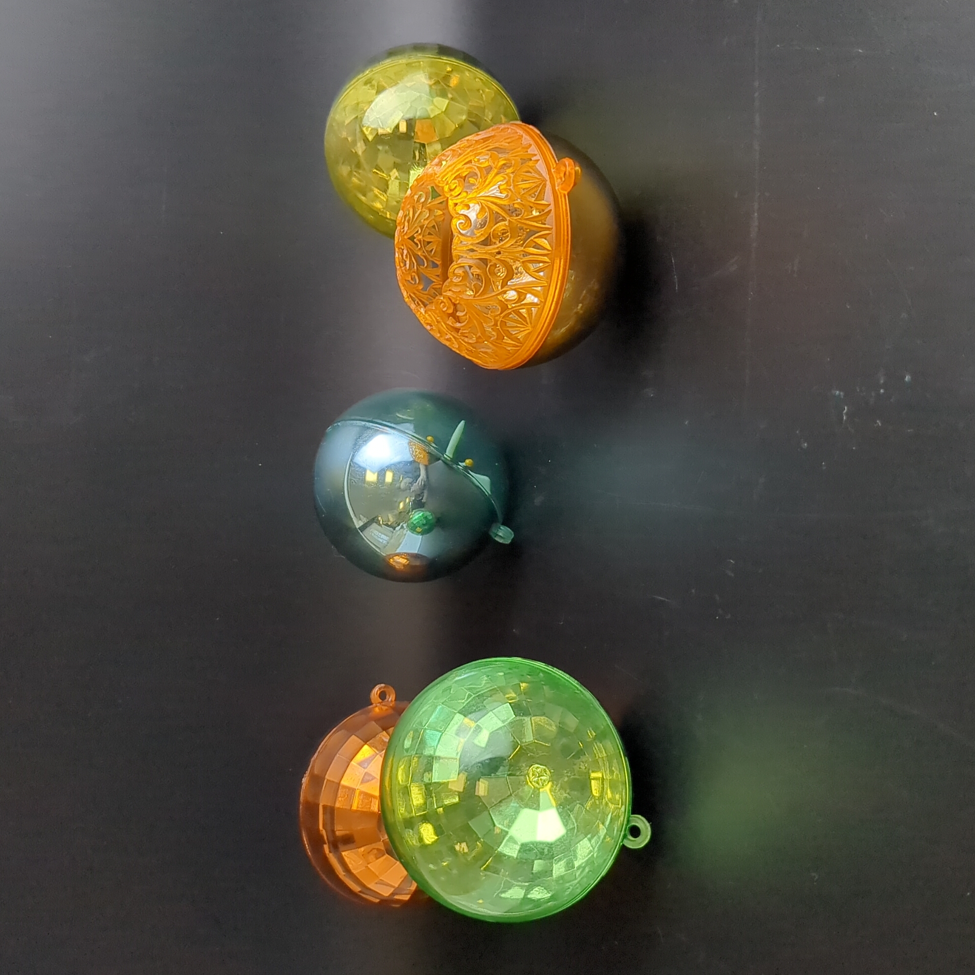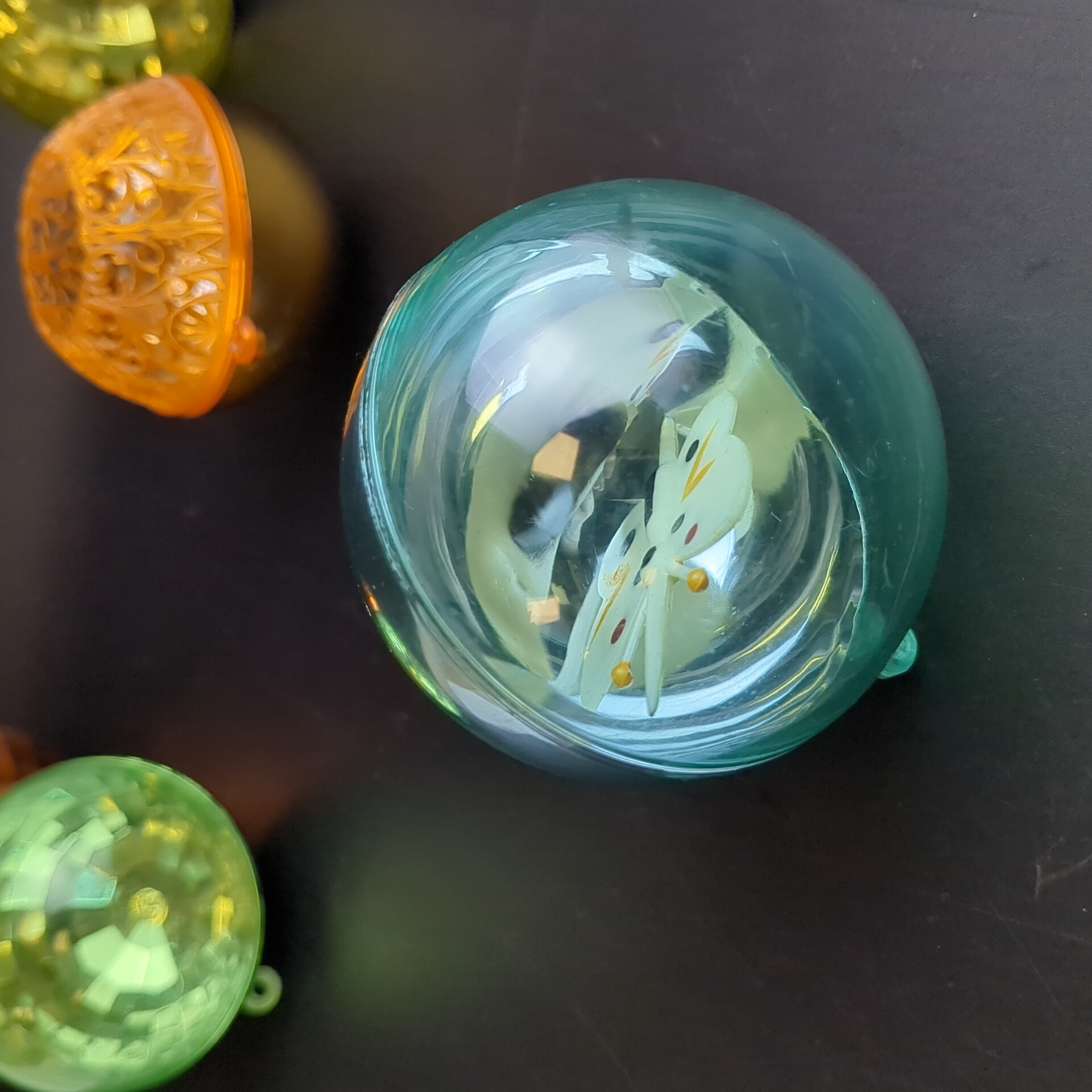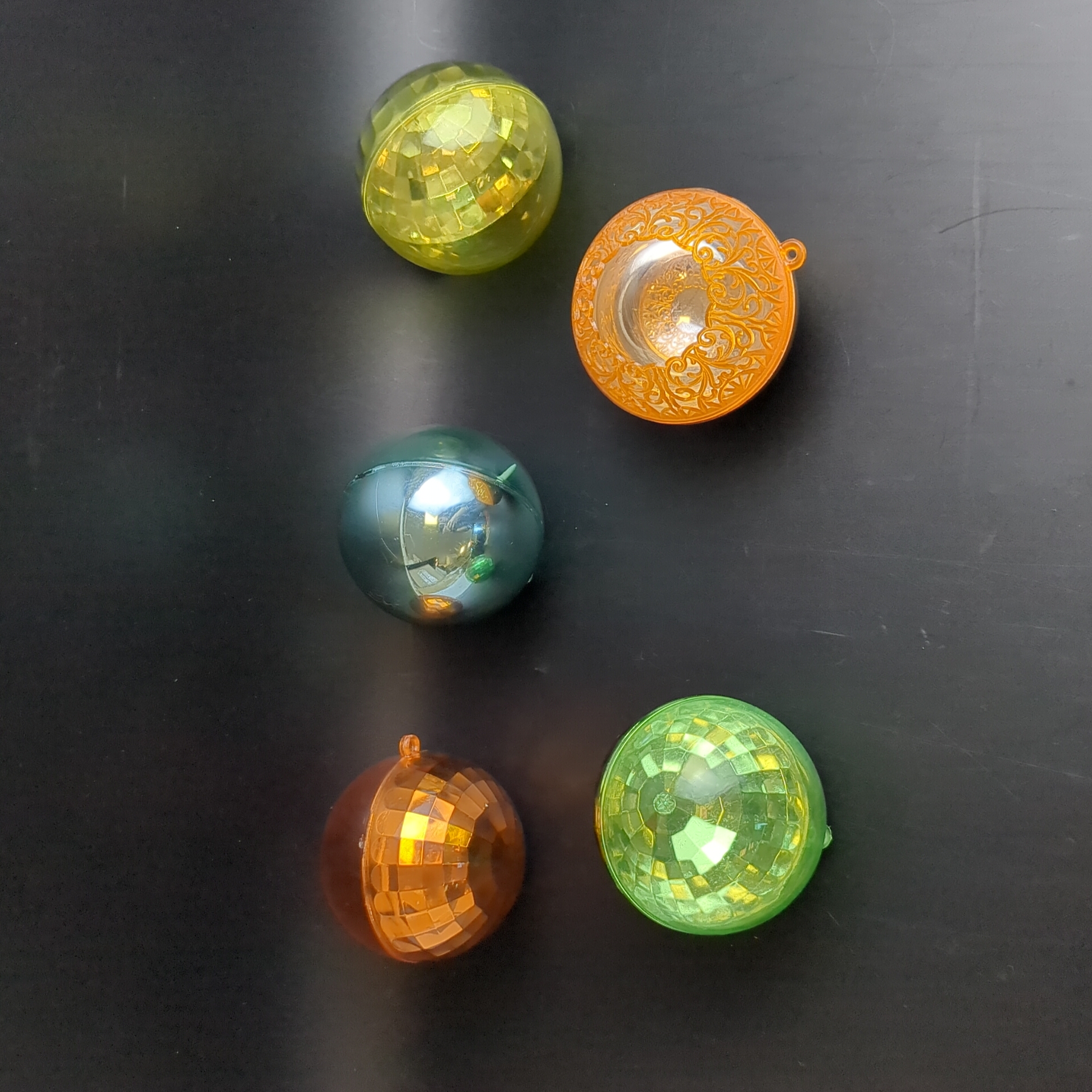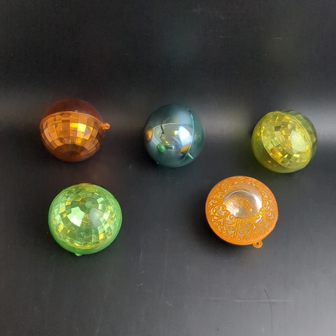 Ёлочные игрушки набор из 5 штук, шар с подвижной бабочкой внутри, ажурный шар и шарики "огоньки", пластик, подвесные, винтаж СССР 1980-1990 гг