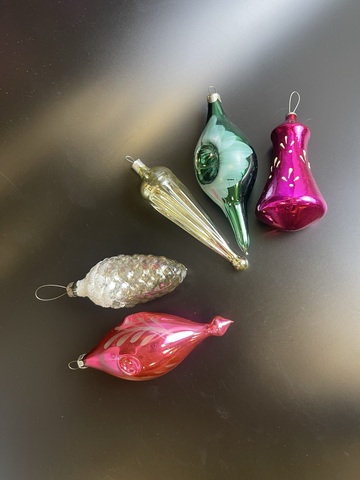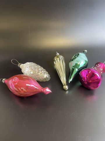 Ёлочные игрушки набор из 5 штук, сосульки, фонарики, шишка и др, стекло, винтаж СССР 1960-1990 гг. Комплектация и состояние на фото