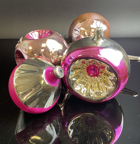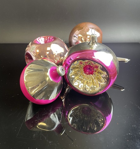 Ёлочные игрушки набор из 5 штук ярких разных, юла, фонарики, сосулька, подвесные, яркая ручная роспись, винтаж СССР 1960-1980 гг