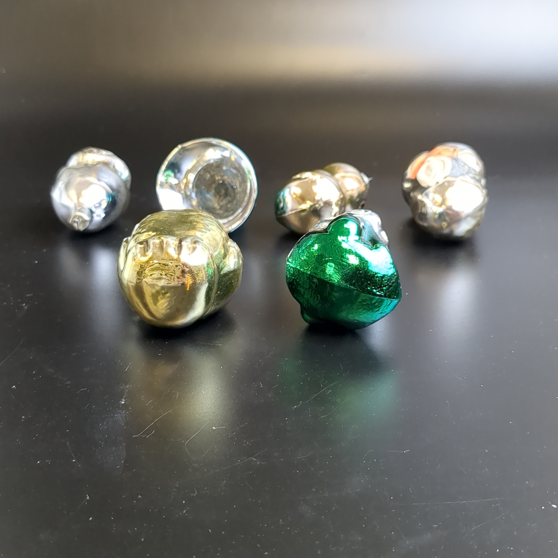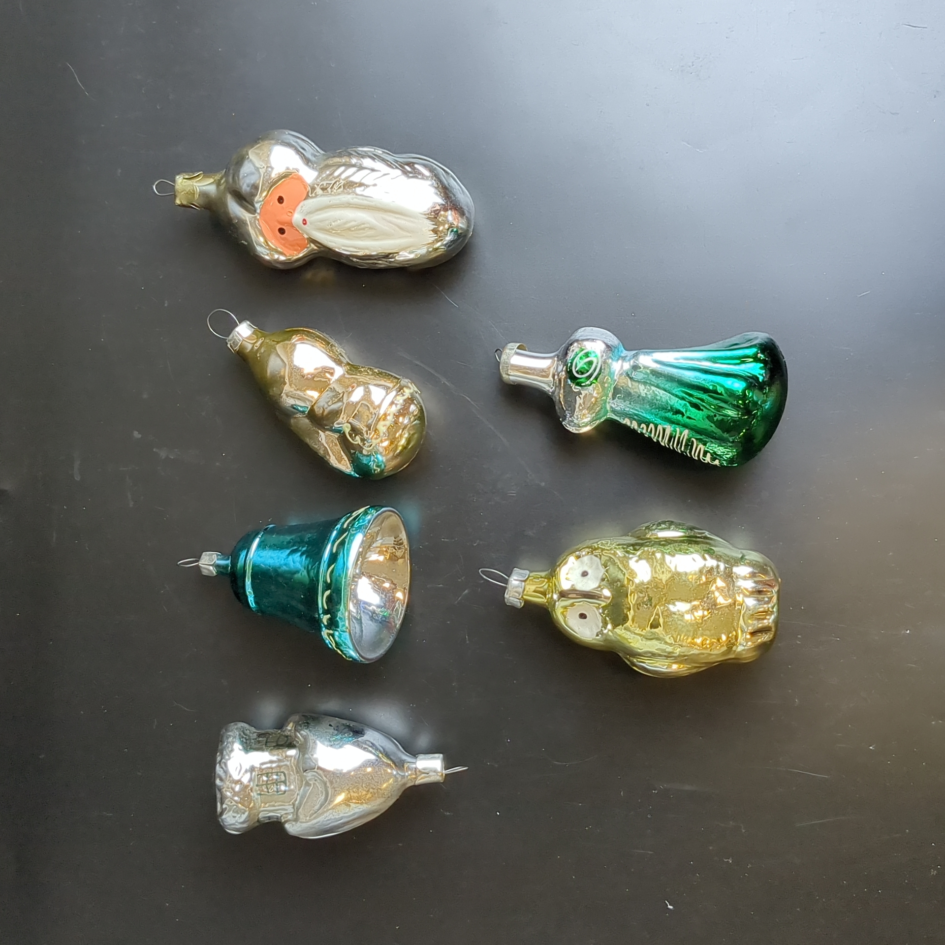 Ёлочные игрушки набор из 6 разных колокольчик, избушка, султан, белочка и др, стекло, подвесные, роспись, винтаж СССР 1960-1980 гг