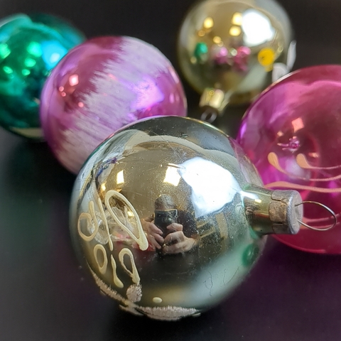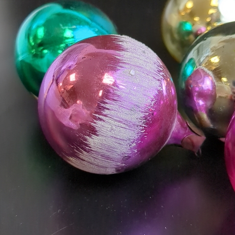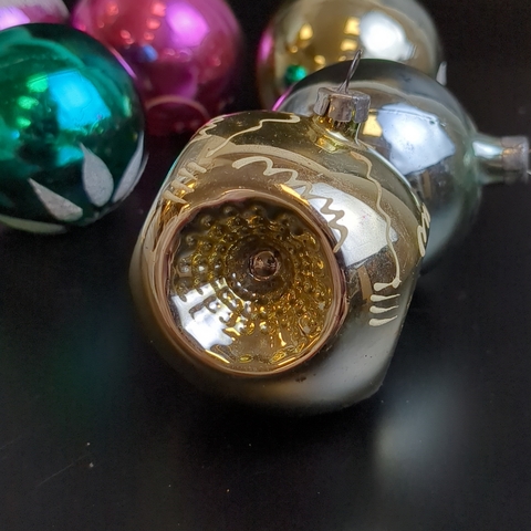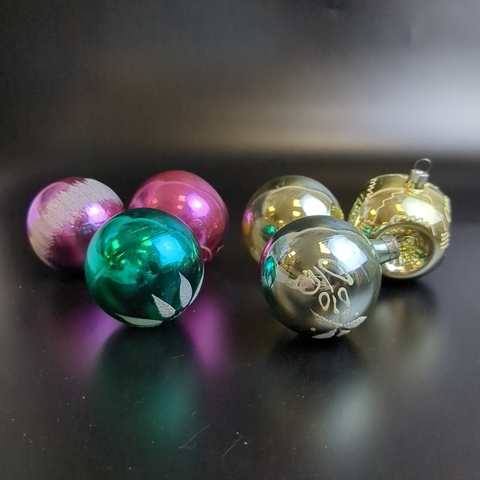 Ёлочные игрушки набор из 6 разных небольших шариков, роспись, стекло, подвесные, винтаж СССР 1960-1980 гг