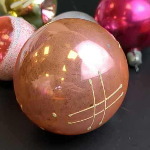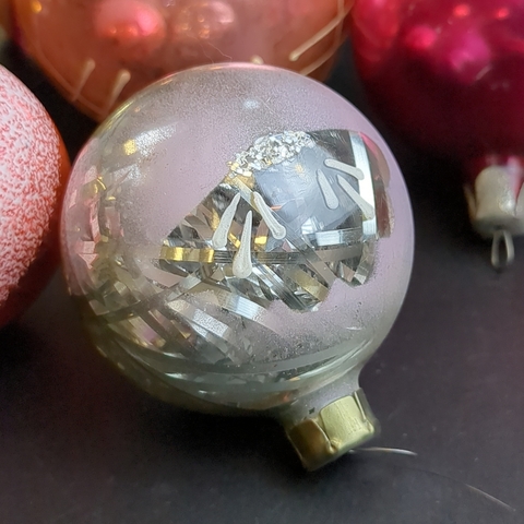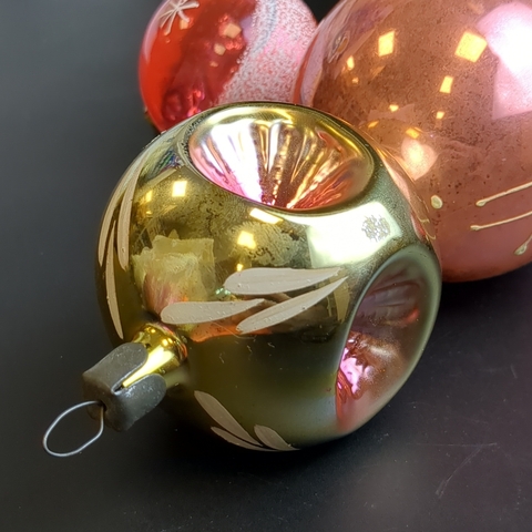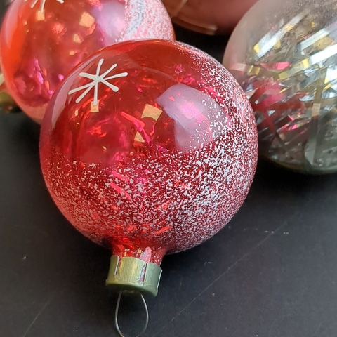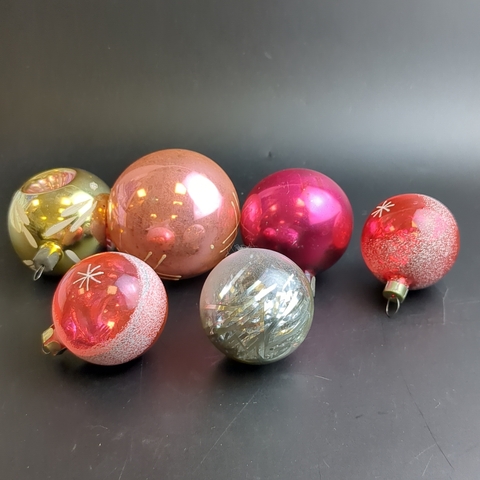 Ёлочные игрушки набор из 6 разных размеров шариков, стекло, подвесные, ручная роспись, винтаж СССР 1960-1980 гг