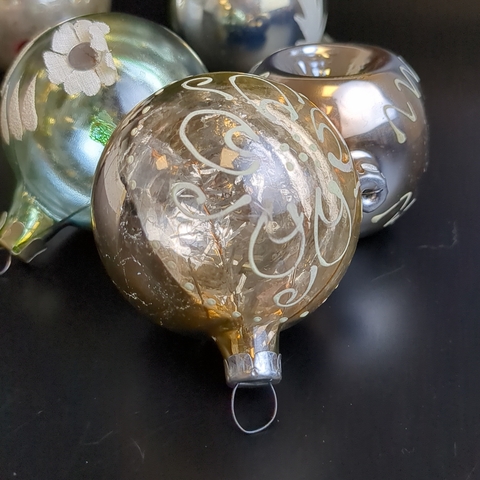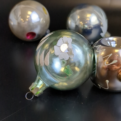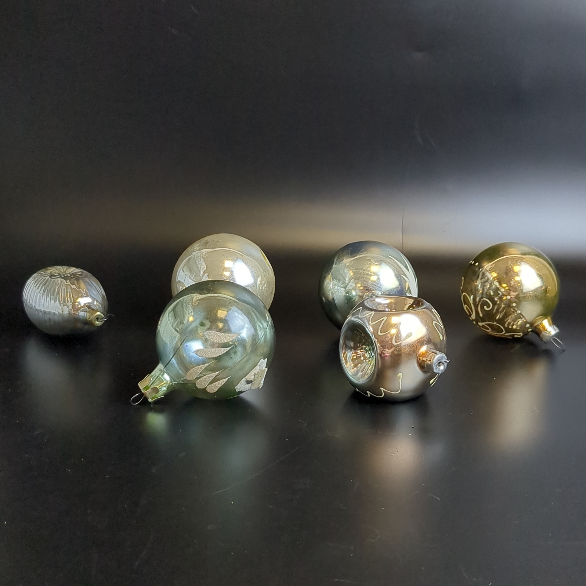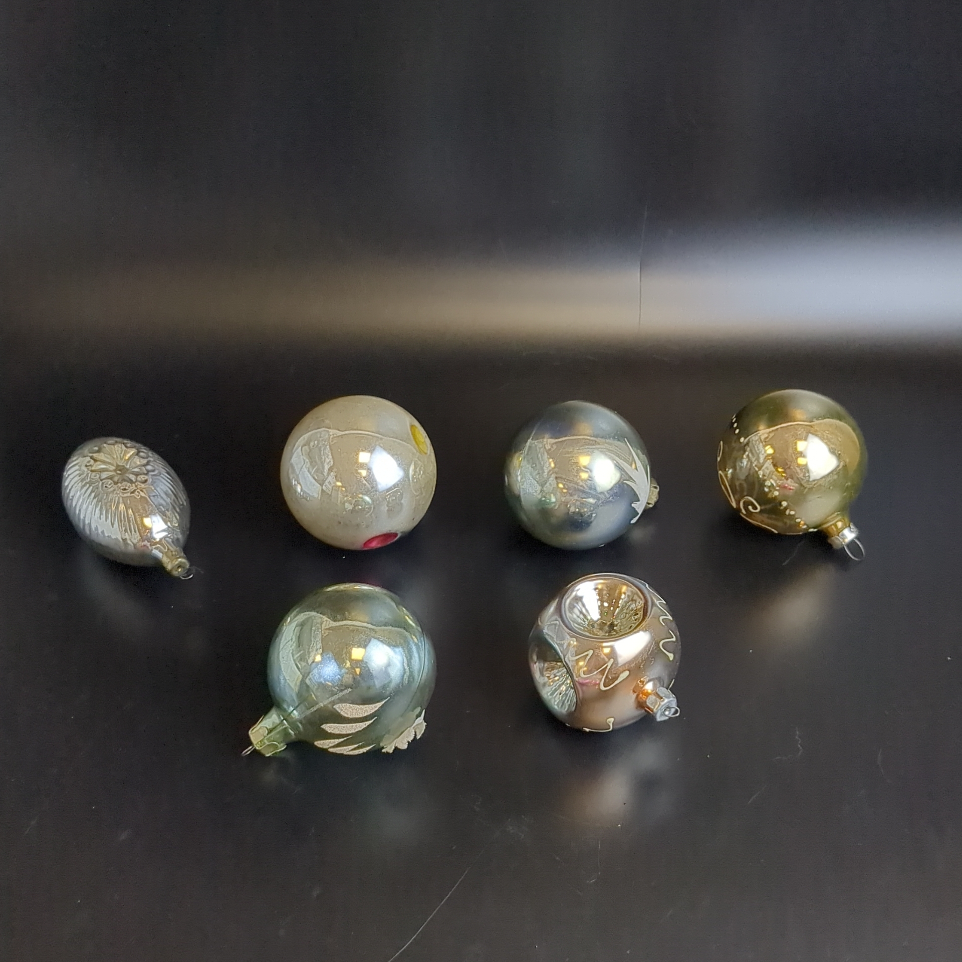 Ёлочные игрушки набор из 6 разных шариков, стекло, подвесные, ручная роспись, узоры, винтаж СССР 1960-1990 гг