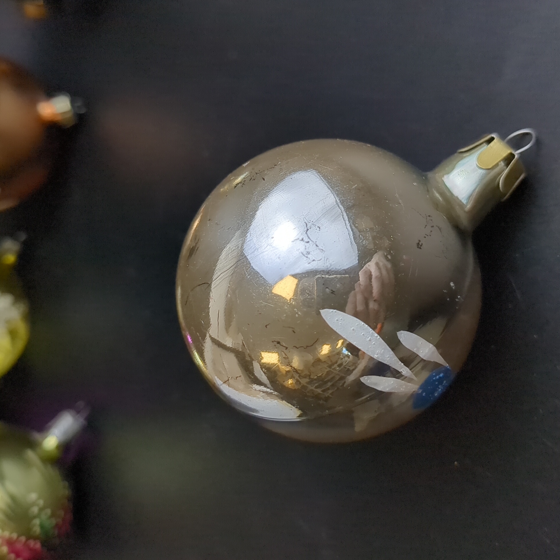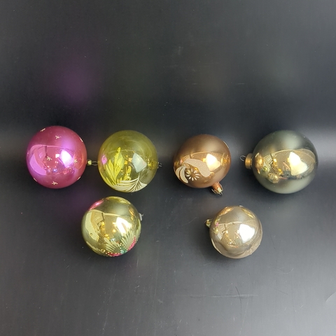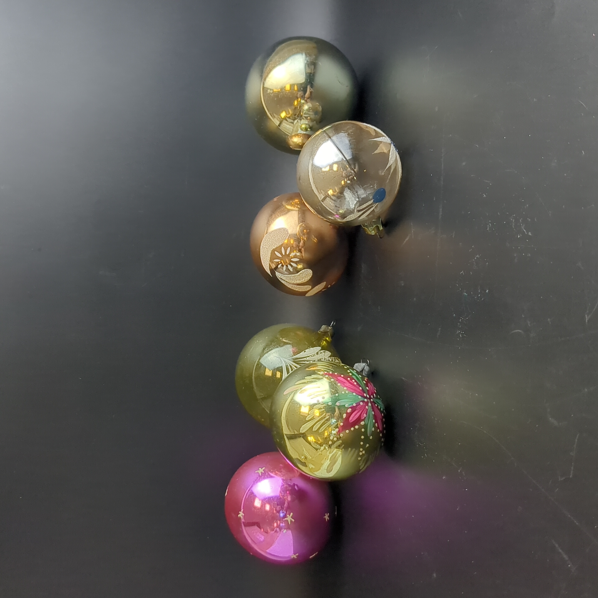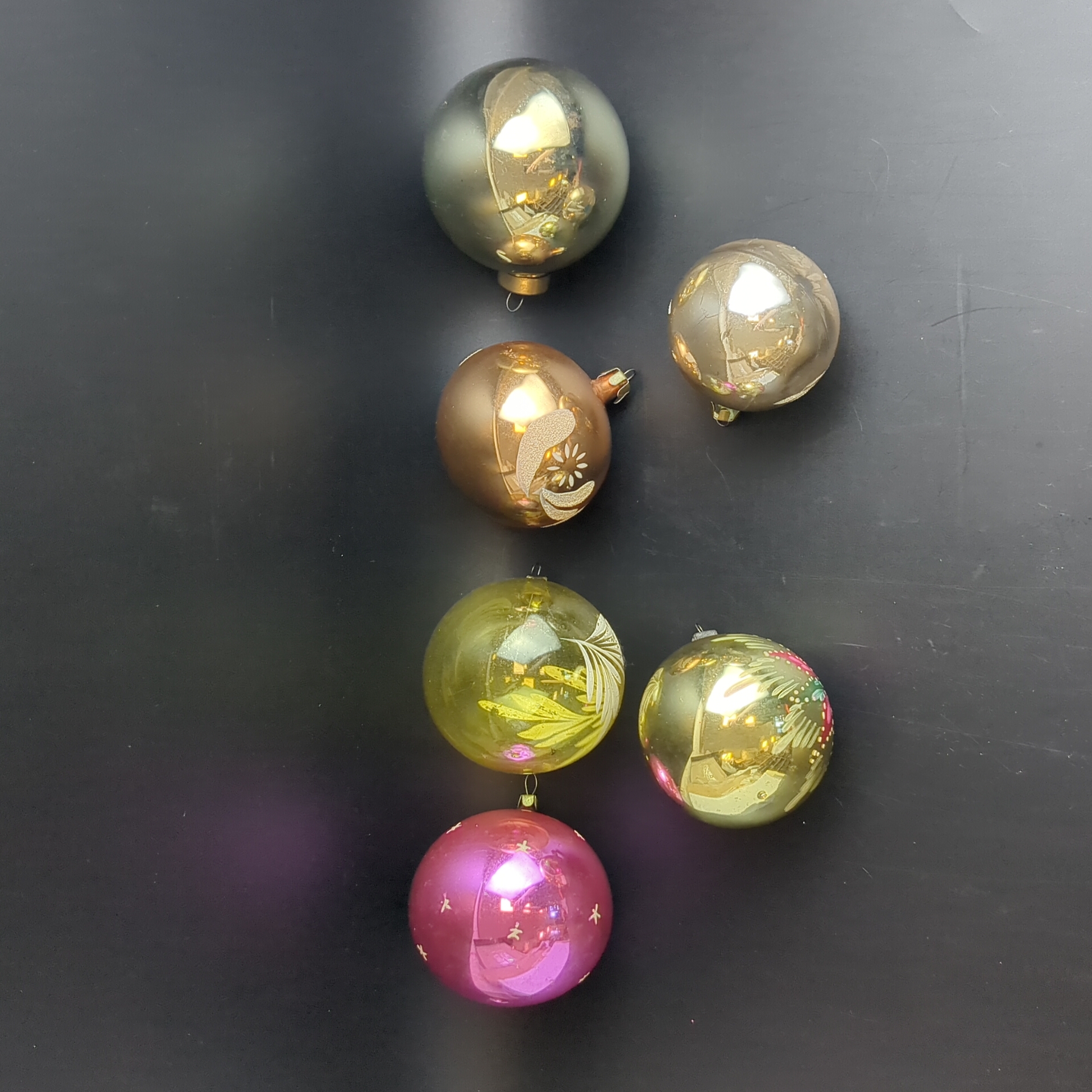 Ёлочные игрушки набор из 6 разных шариков, стекло, роспись, узоры, подвесные, винтаж СССР 1970-1990 гг. Состояние и комплектация на фото, частично стерта краска. Винтажные шарики на ёлку времён СССР. Ёлочные украшения в ретро стиле.