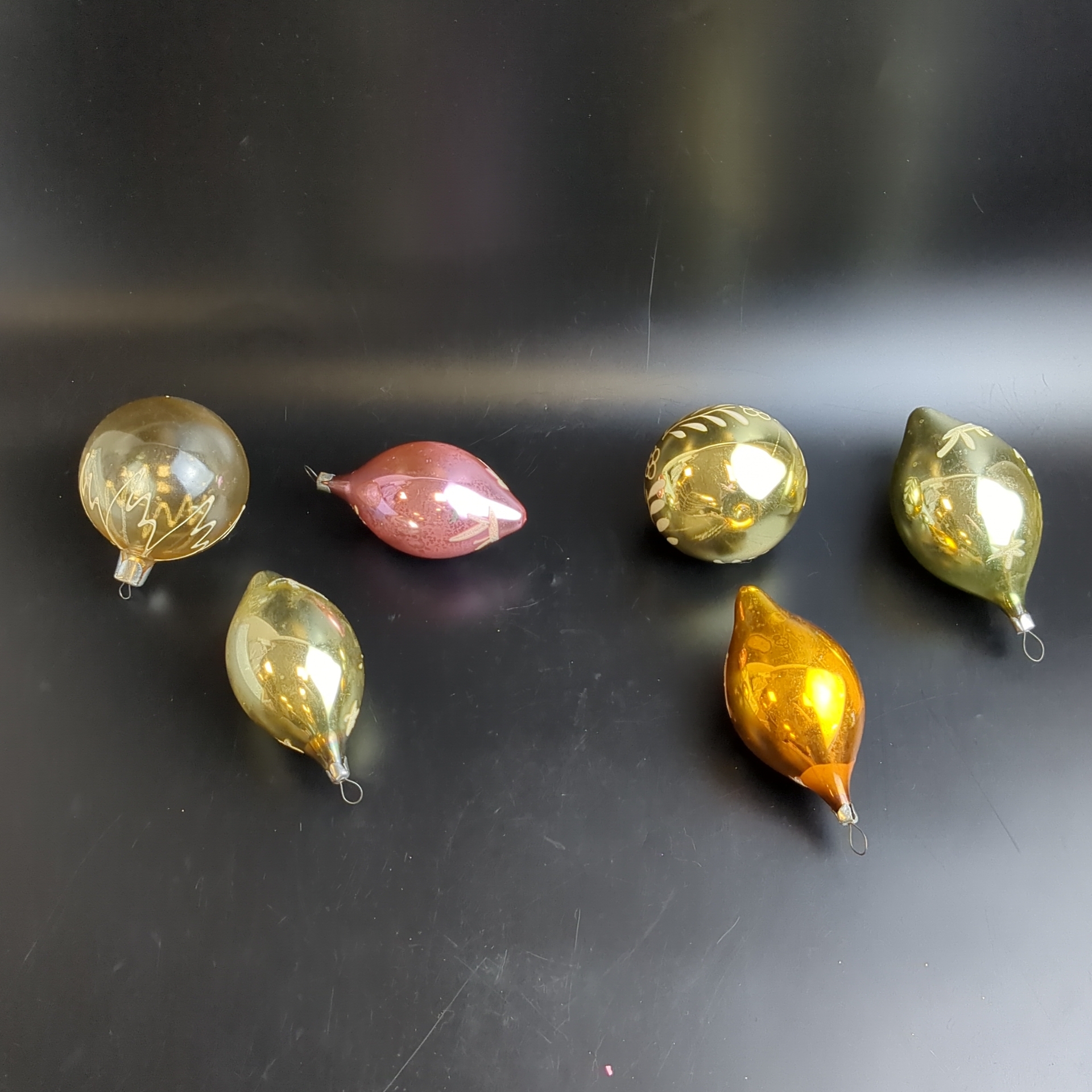 Ёлочные игрушки набор из 6 разных штук, с ручной росписью, стекло, подвесные, винтаж СССР 1960-1980 гг. Советские ёлочные игрушки и украшения. Состояние и комплектация на фото.