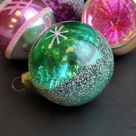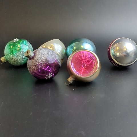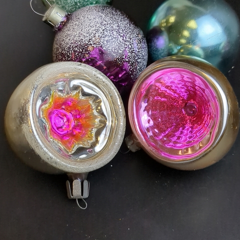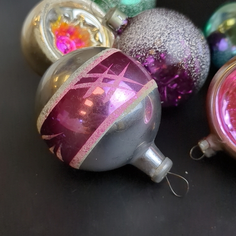 Ёлочные игрушки набор из 6 разных штук, шарики и фонарики, стекло, подвесные, яркие, винтаж СССР 1960-1980 гг