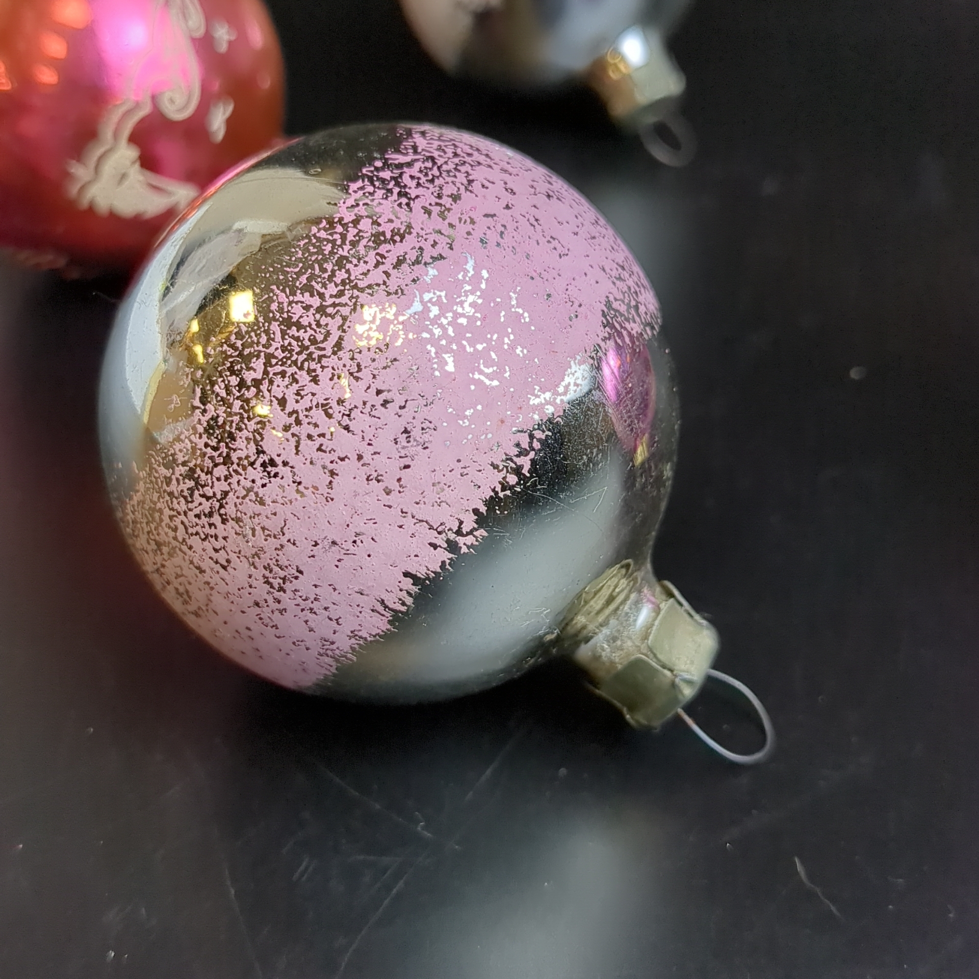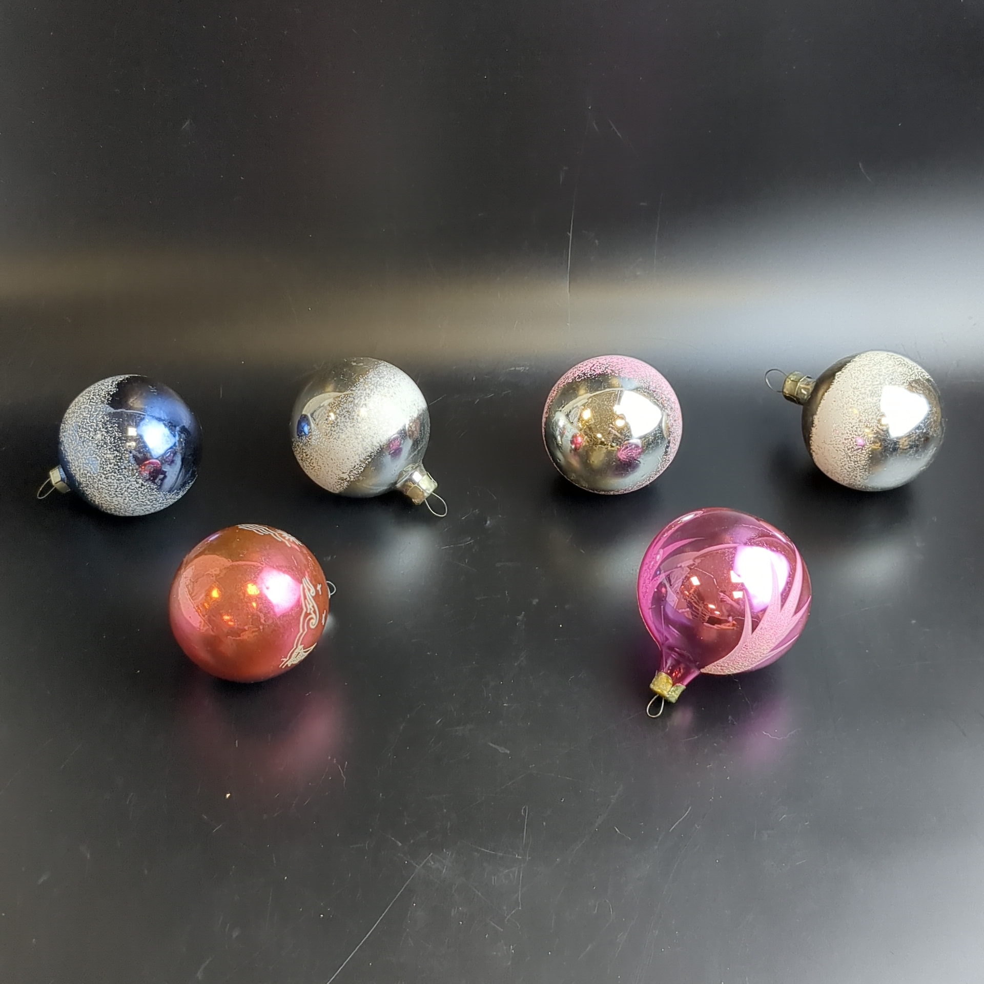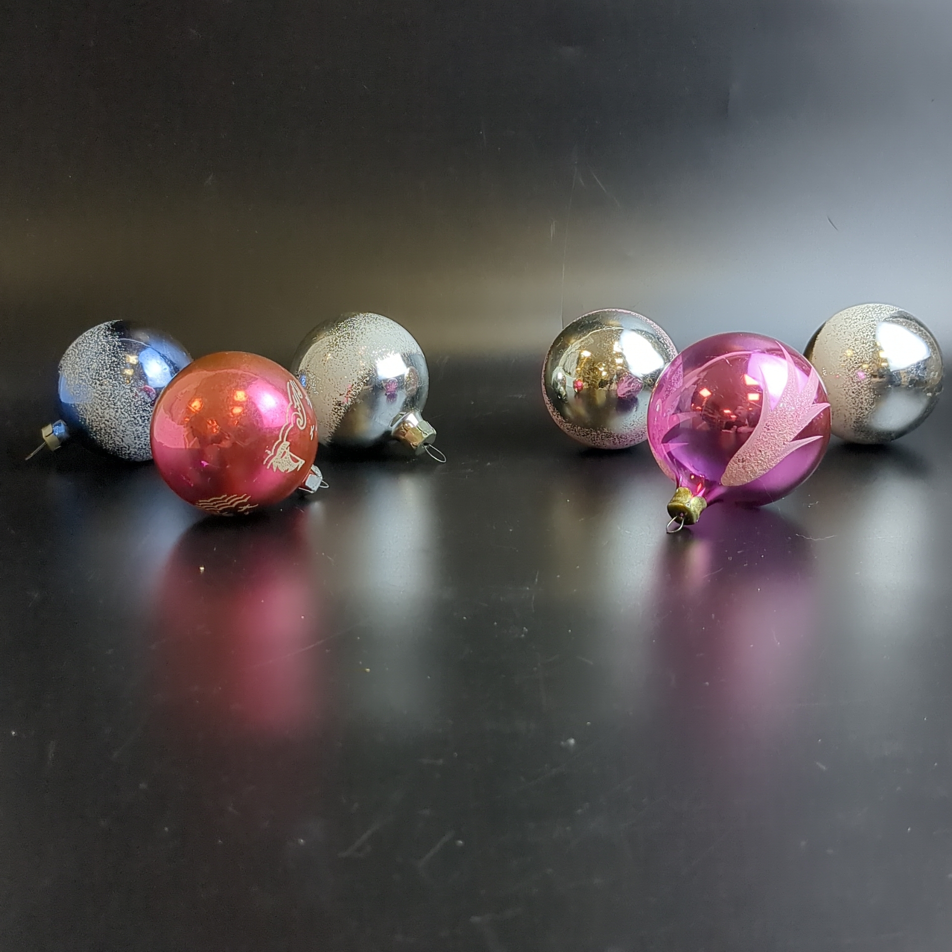 Ёлочные игрушки набор из 6 разных штук, шарики с росписью, d-5.5 см, стекло, подвесные, винтаж СССР 1960-1980 гг. Советские ёлочные игрушки и украшения. Состояние и комплектация на фото.