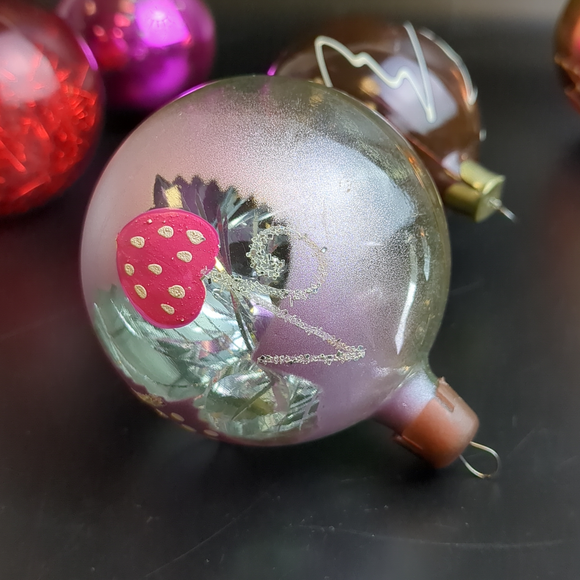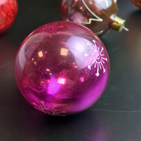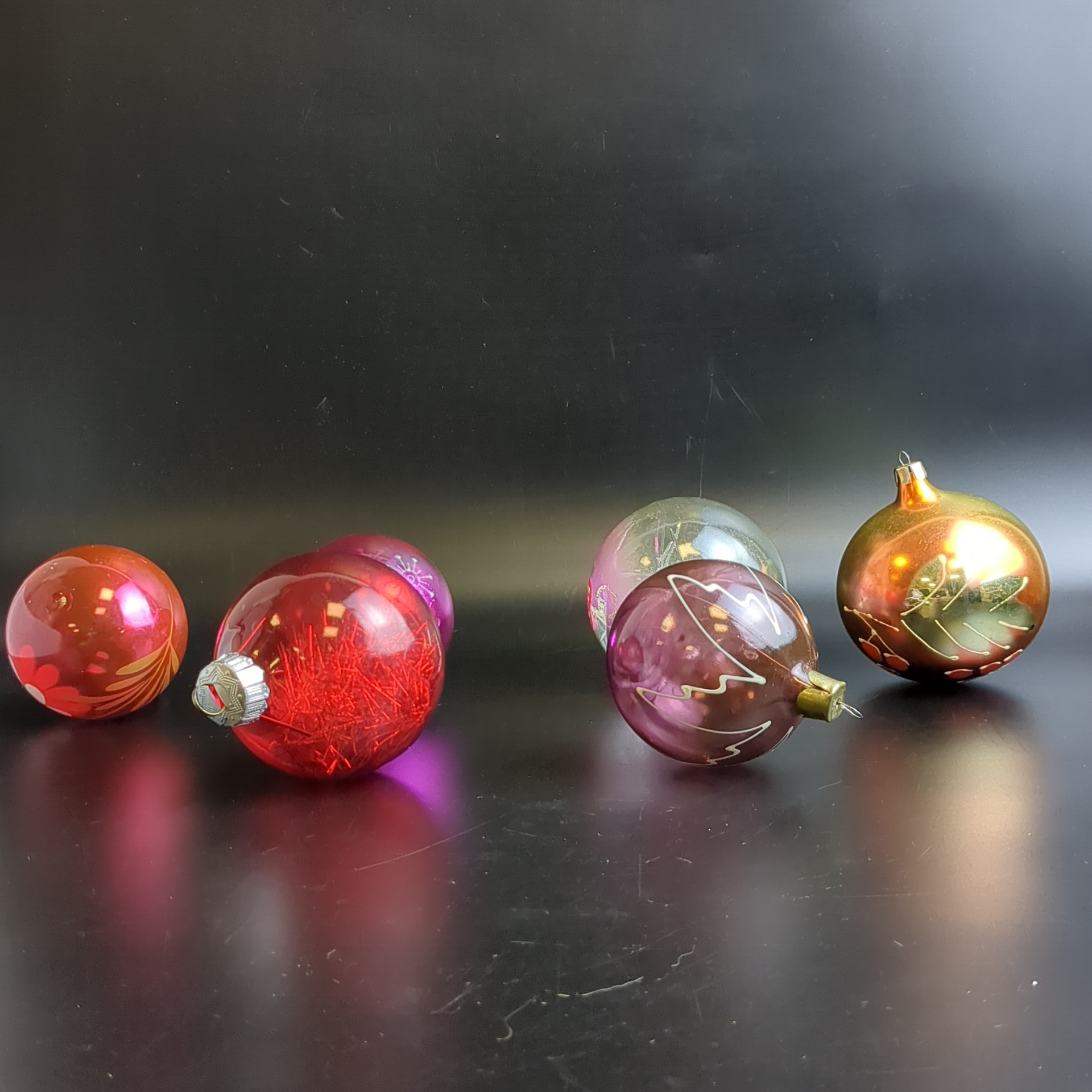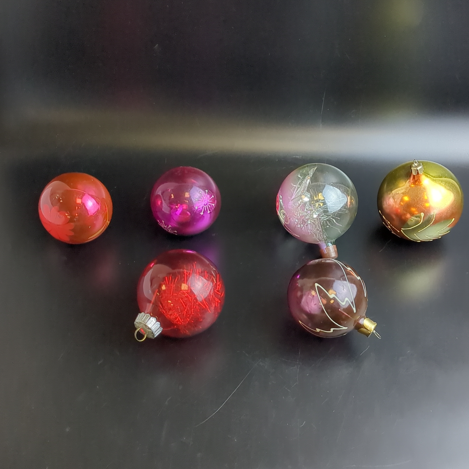 Ёлочные игрушки набор из 6 разных средних шариков, стекло, ручная роспись, подвесные, винтаж времён СССР 1960-1980 гг. Советские ёлочные игрушки и украшения. Состояние и комплектация на фото.