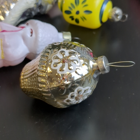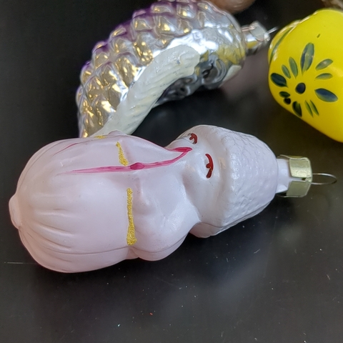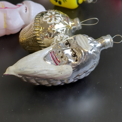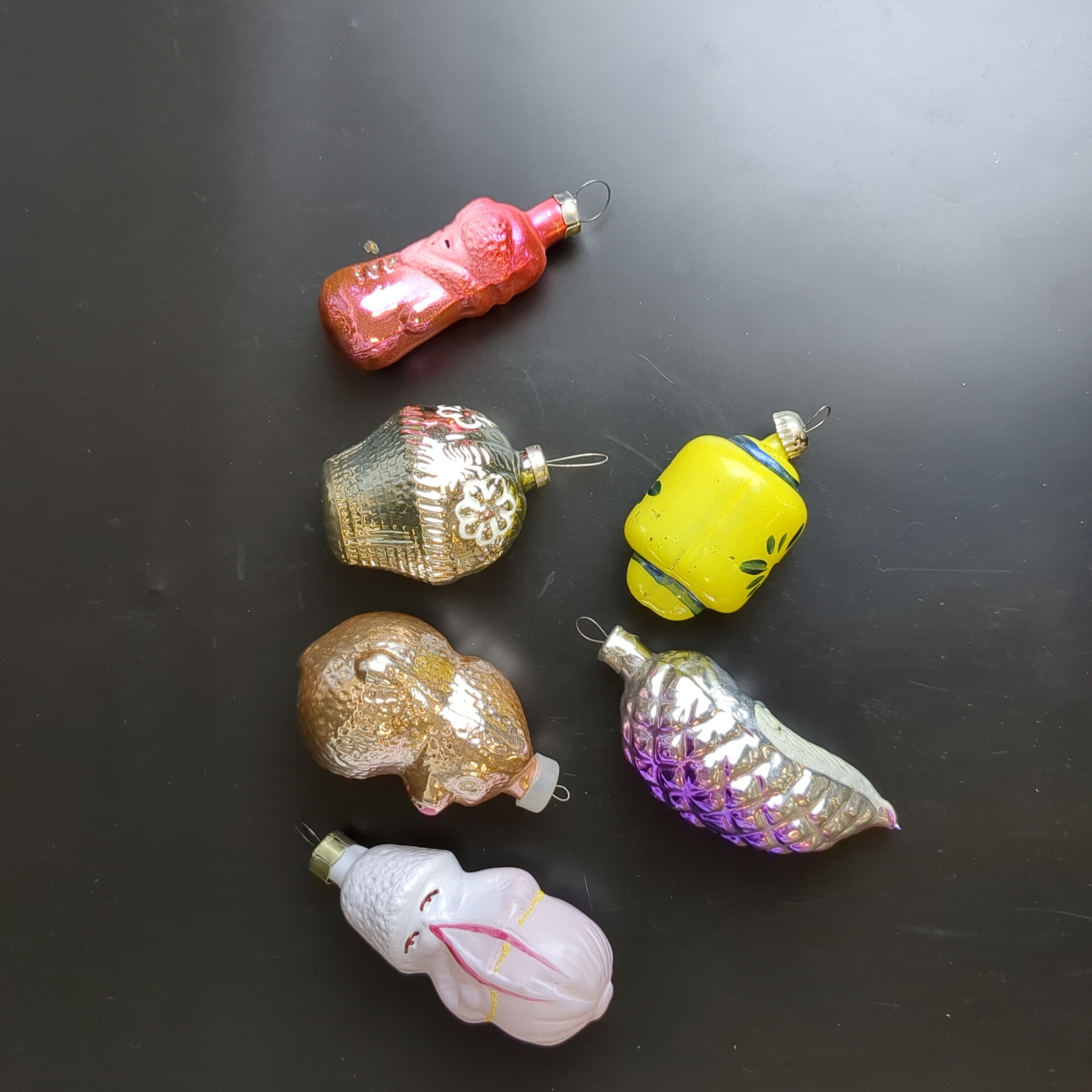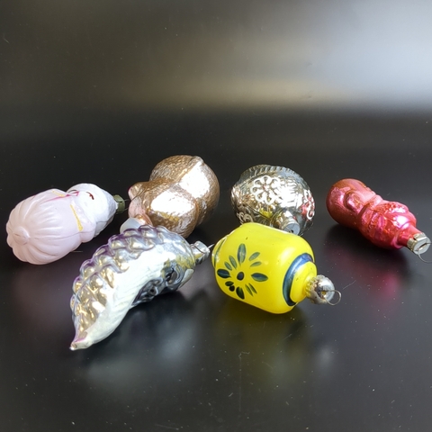 Ёлочные игрушки набор из 6 штук разных, винни пух, месяц с лицом, кексик и др, стекло, подвесные винтаж СССР 1960-1980 гг
