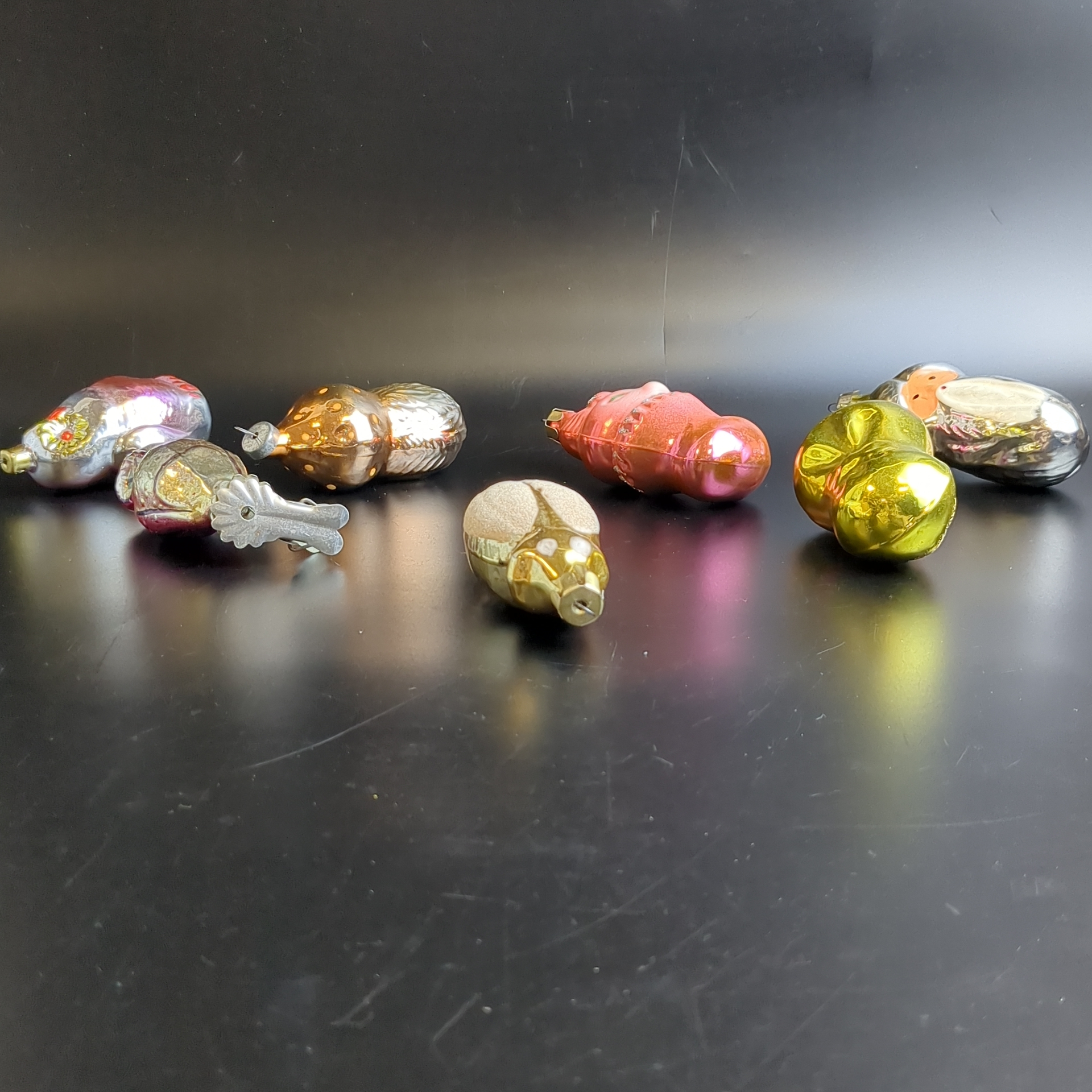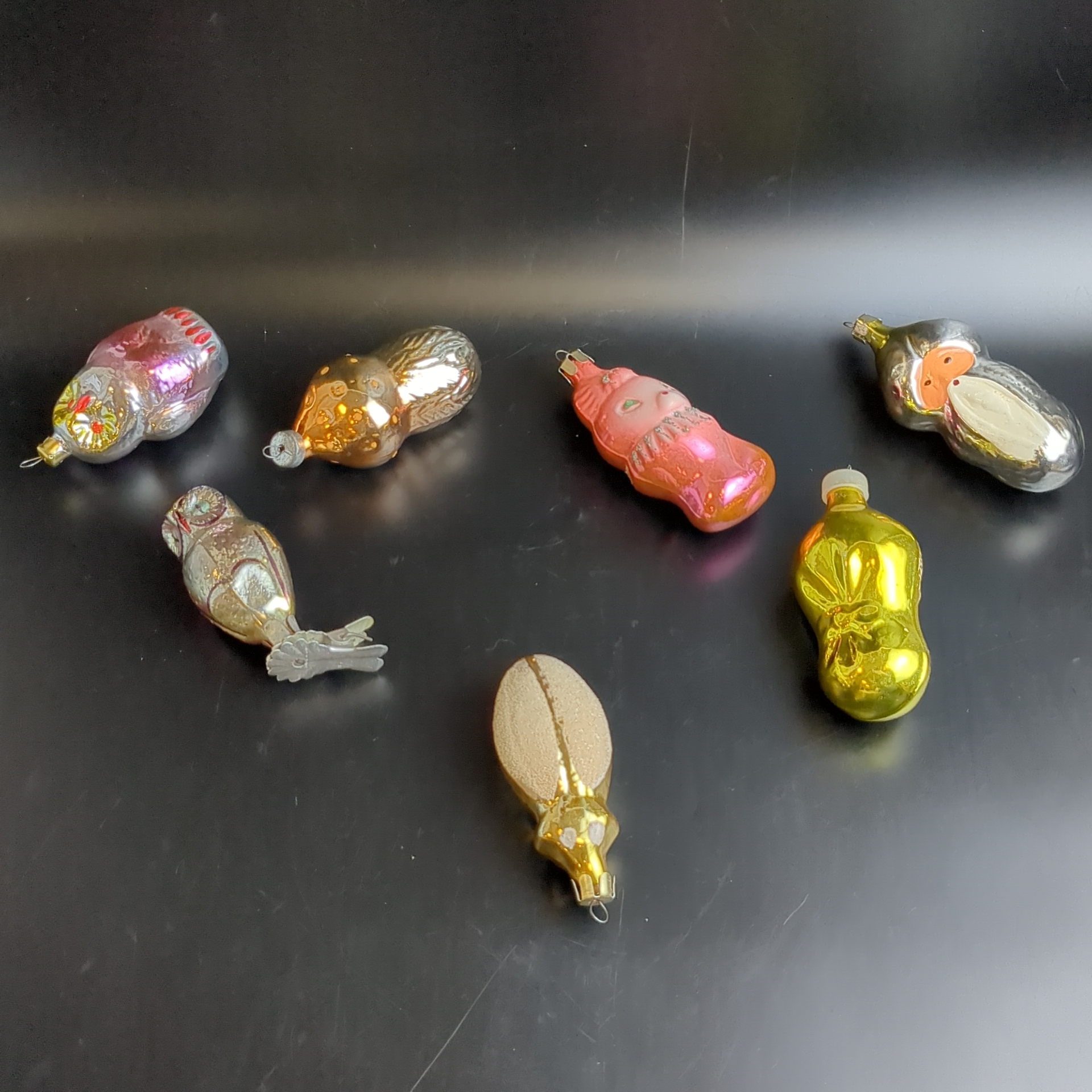 Ёлочные игрушки набор из 7 разных штук, сова на прищепке, лиса, гриб и др, стекло, подвесные, винтаж времён СССР 1960-1980 гг. Советские ёлочные игрушки и украшения. Состояние и комплектация на фото.